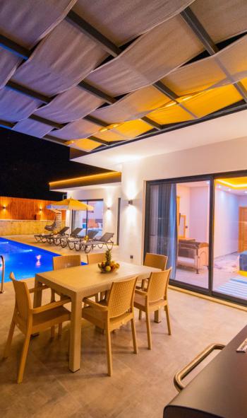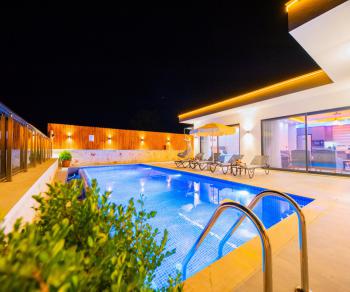 Özel ve korunaklı havuzuyla dikkat çeken villamız, çekirdek aileler ve balayı çiftleri için ideal bir seçenektir. Konforlu mobilyalarıyla donatılmış villamızda, Jakuzi ve Sauna gibi lüks detaylar da bulunmaktadır. Her iki yatak odasında da ebeveyn banyosu yer almakta olup, misafirlerimize konforlu bir konaklama sunmayı hedeflemekteyiz. Ayrıca, eğlenceli vakit geçirebilmeniz için langırt, satranç ve tavla gibi oyunlar da villamızda mevcuttur.