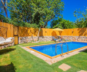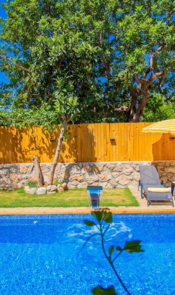 Korunaklı Havuz Terası: Özel havuz terasımız dışarıdan görünmeyecek şekilde korunaklıdır ve huzurlu bir tatil imkanı sunar.