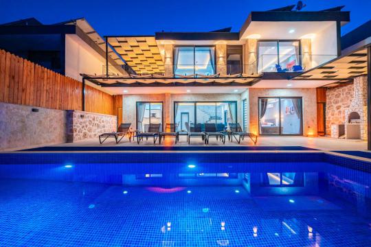 Kalkan Fırnaz Bölgesinde Deniz Manzaralı 6 Kişilik Tatil Villası