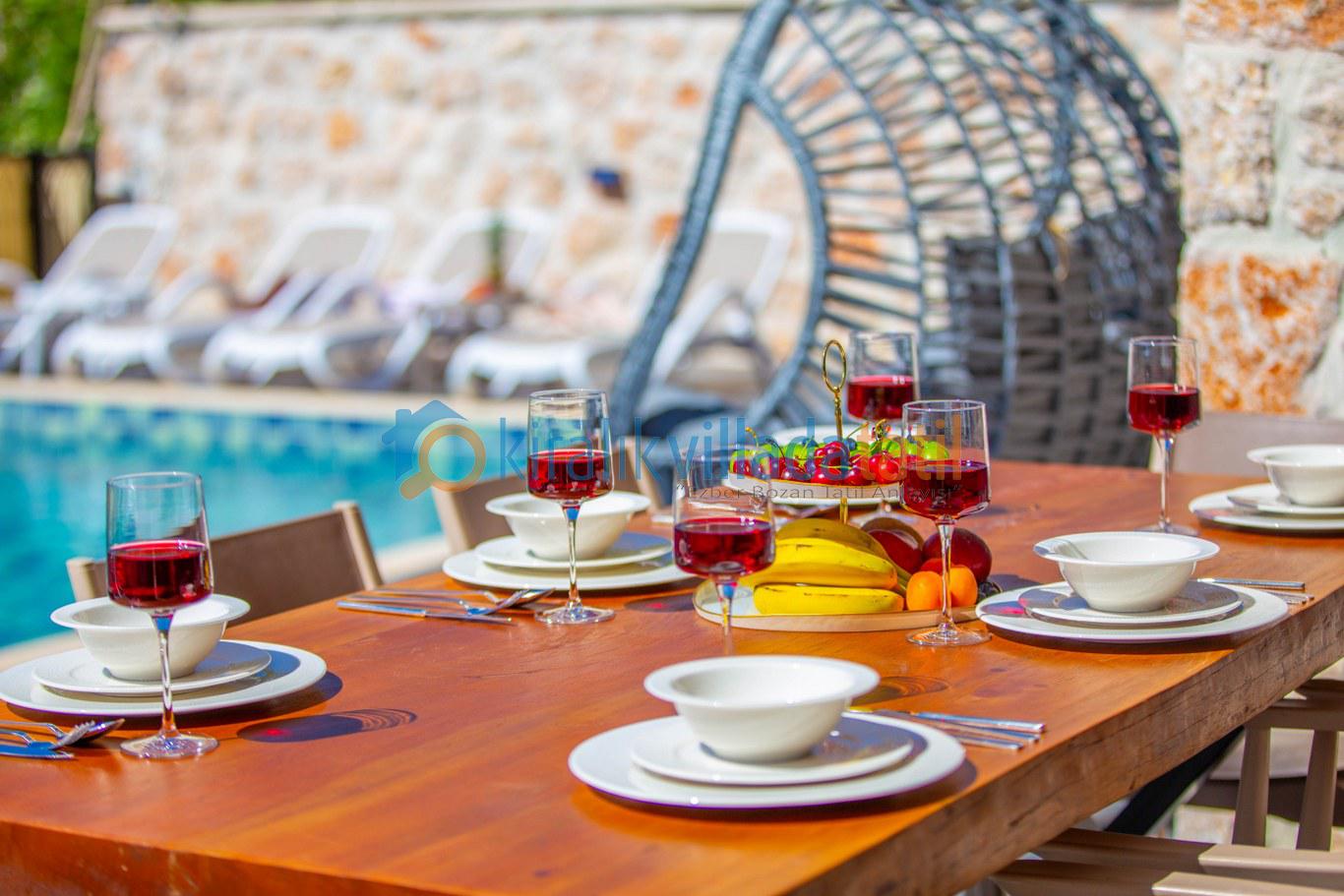 Doğayla iç içe, tamamen size ait bir alanda keyifli bir tatil geçirmek istiyorsanız, Kaş Hacıoğlan bölgesindeki bu özel villa sizleri ağırlamaya hazır.