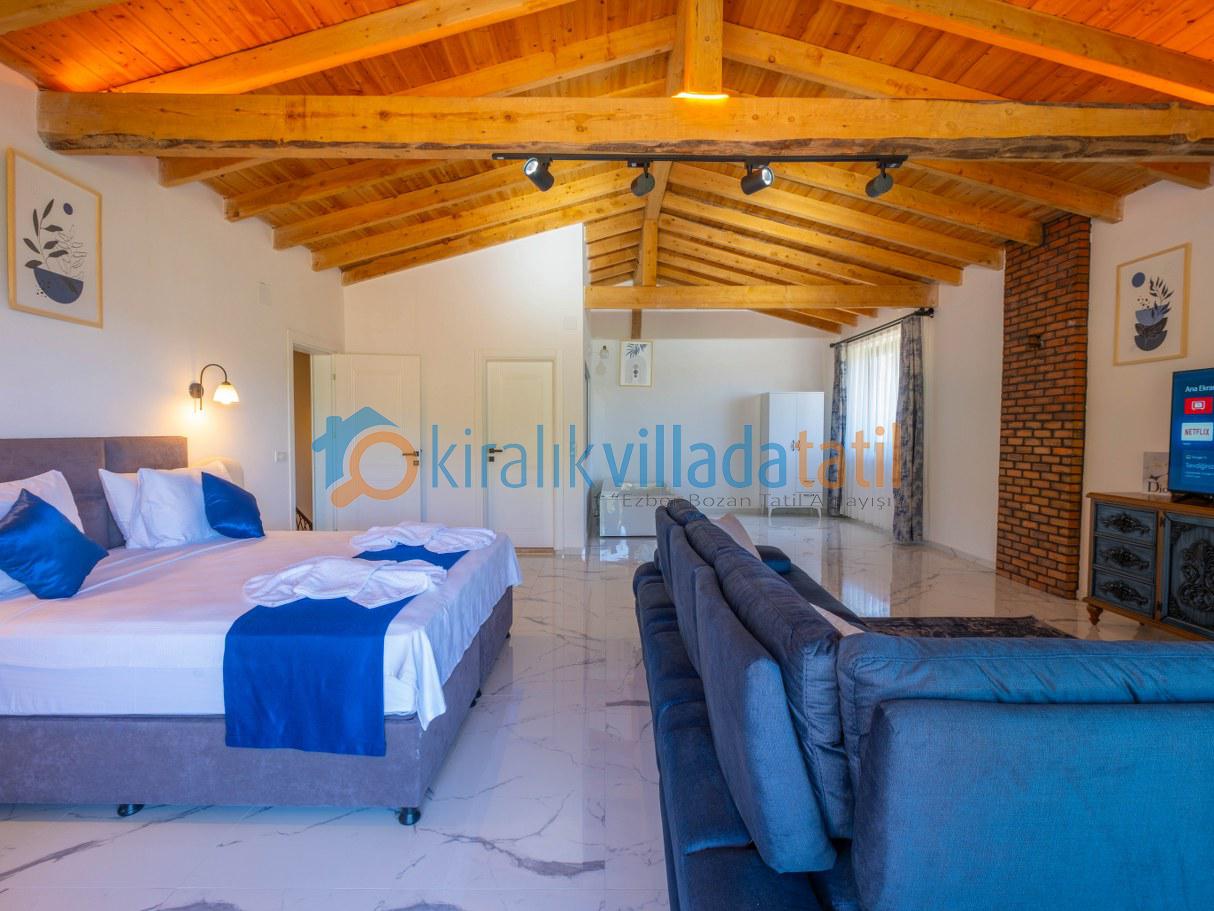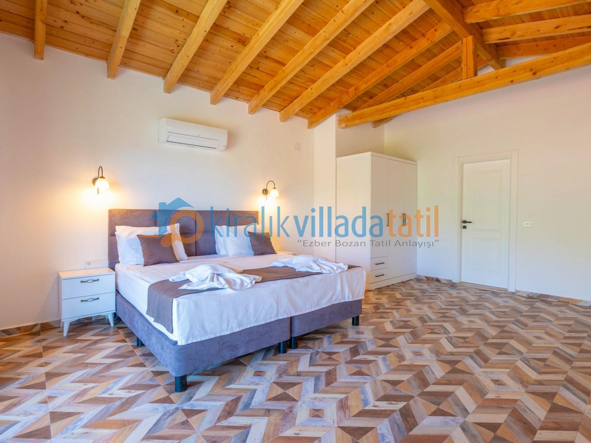 Toplam 3 yatak odasından oluşan villanın tüm odalarında çift kişilik yatak ve ebeveyn banyosu bulunmaktadır. Ebeveyn odalarından birinde jakuzi yer alması, tatilinize hem lüks hem de dinlendirici bir dokunuş katmaktadır. Bu özellik sayesinde misafirler, günün yorgunluğunu rahatlıkla atabilir ve manzaraya karşı keyifli anlar yaşayabilir.