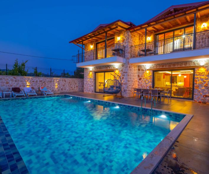 Geniş bahçe alanı, özel yüzme havuzu ve tamamen size özel yaşam alanı sunan bu villa, doğanın içinde güvenli bir tatil geçirmek isteyen misafirler için mükemmel bir alternatiftir. Villanın ferah iç mekânı modern mobilyalarla dizayn edilmiş olup, konukların ev konforunda bir tatil geçirmesi için tüm mutfak ve ev gereçleri eksiksiz şekilde hazırlanmıştır.