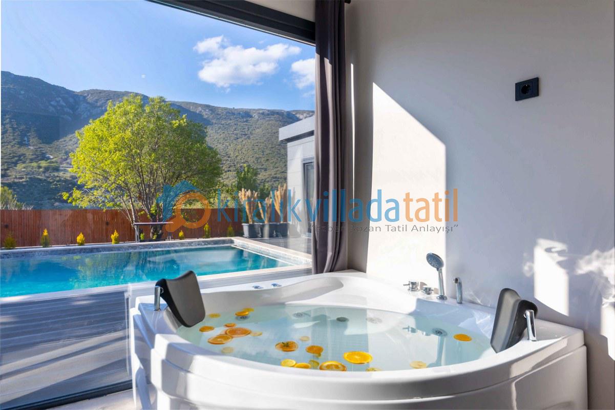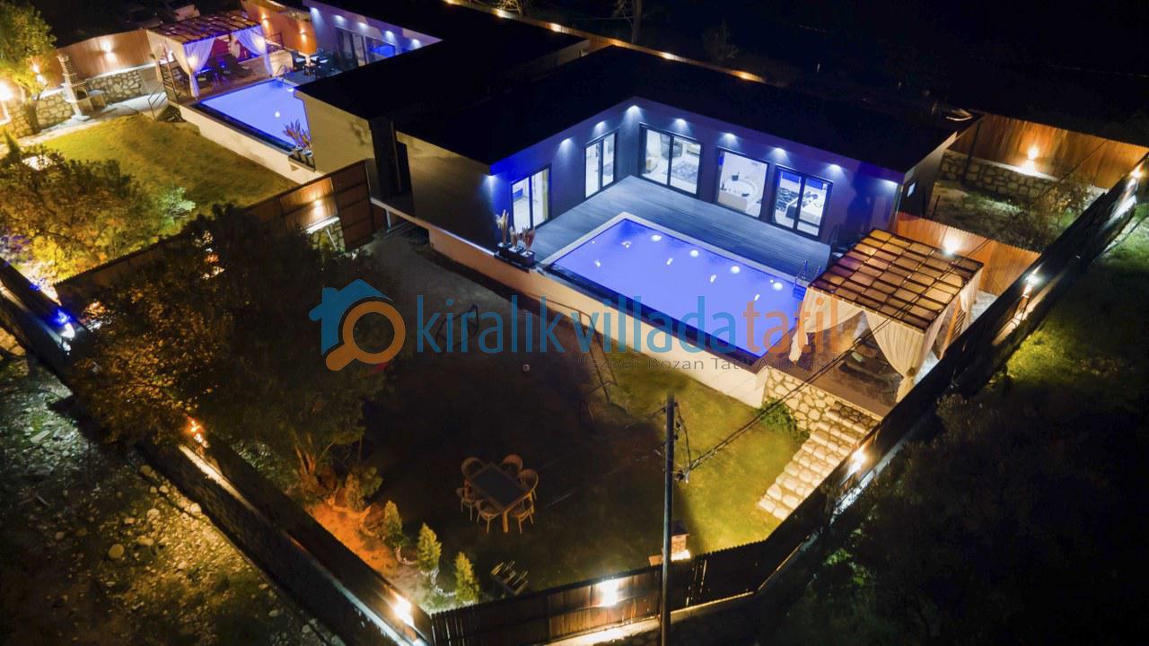 Doğayla iç içe, jakuzili ve özel havuzlu bu villalarda yılın her dönemi rahatlıkla konaklayabilirsiniz.