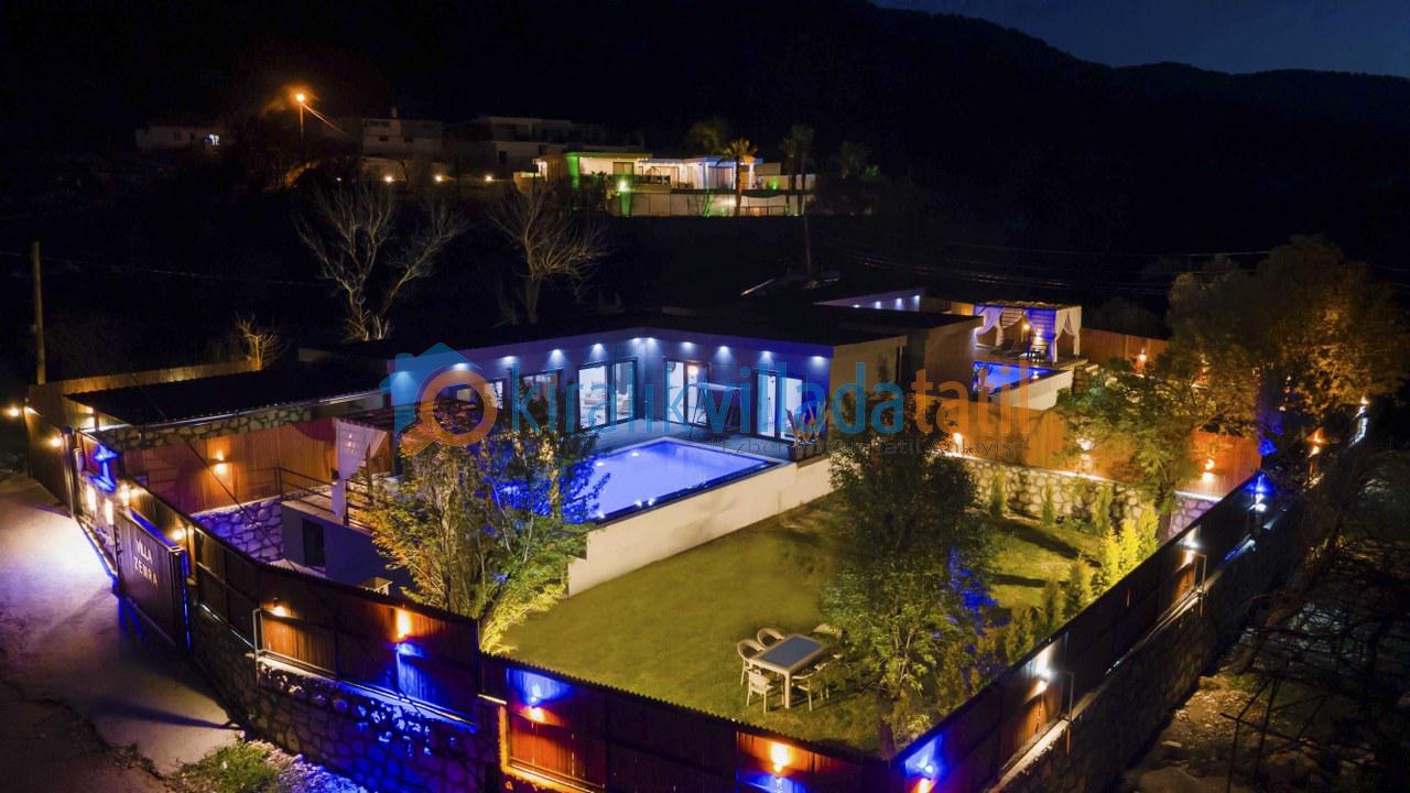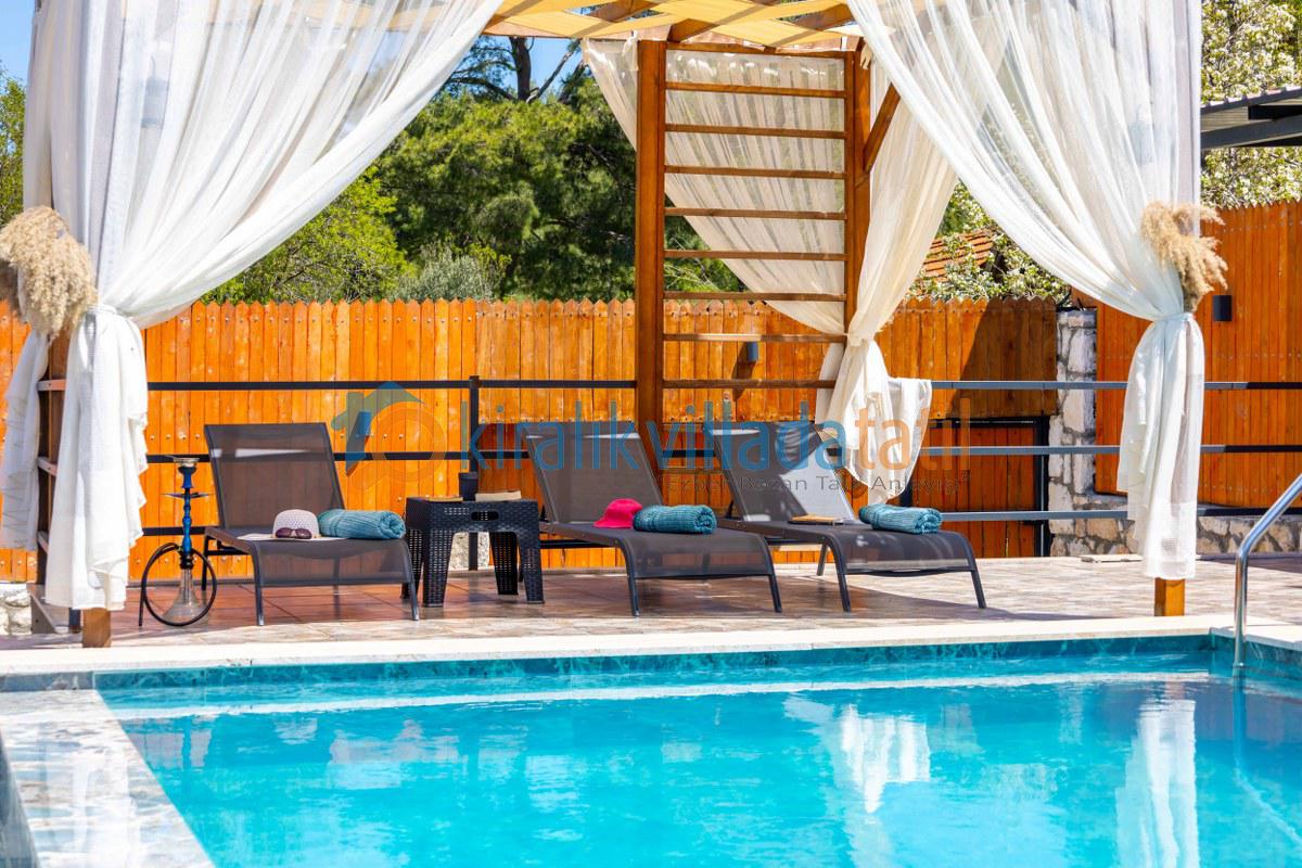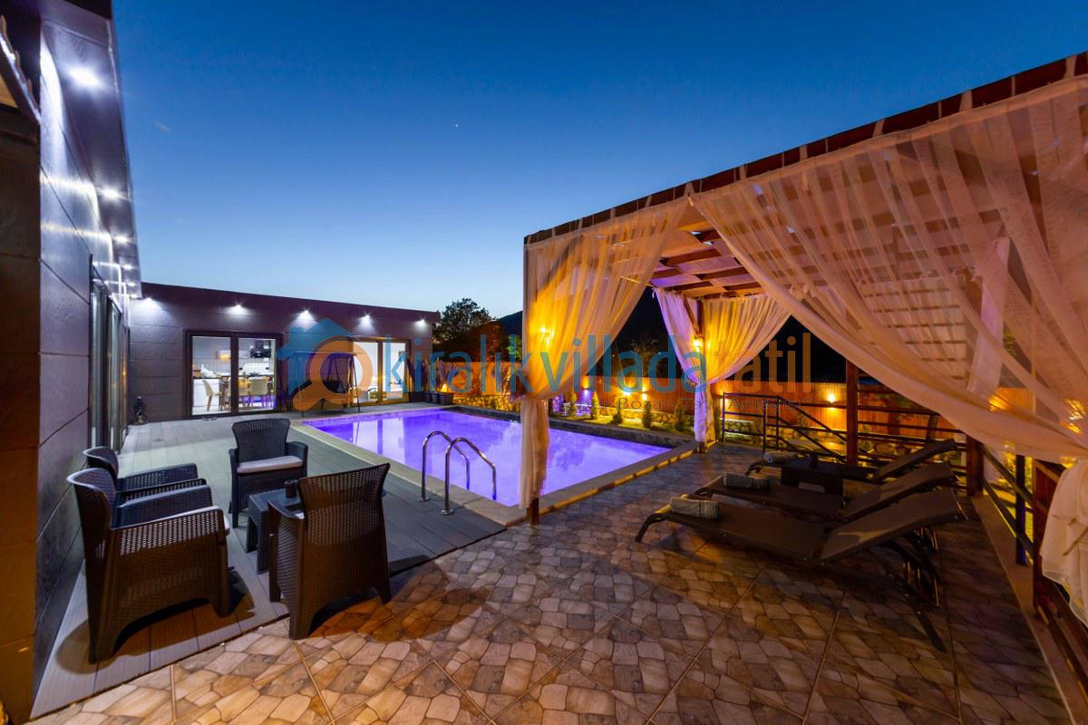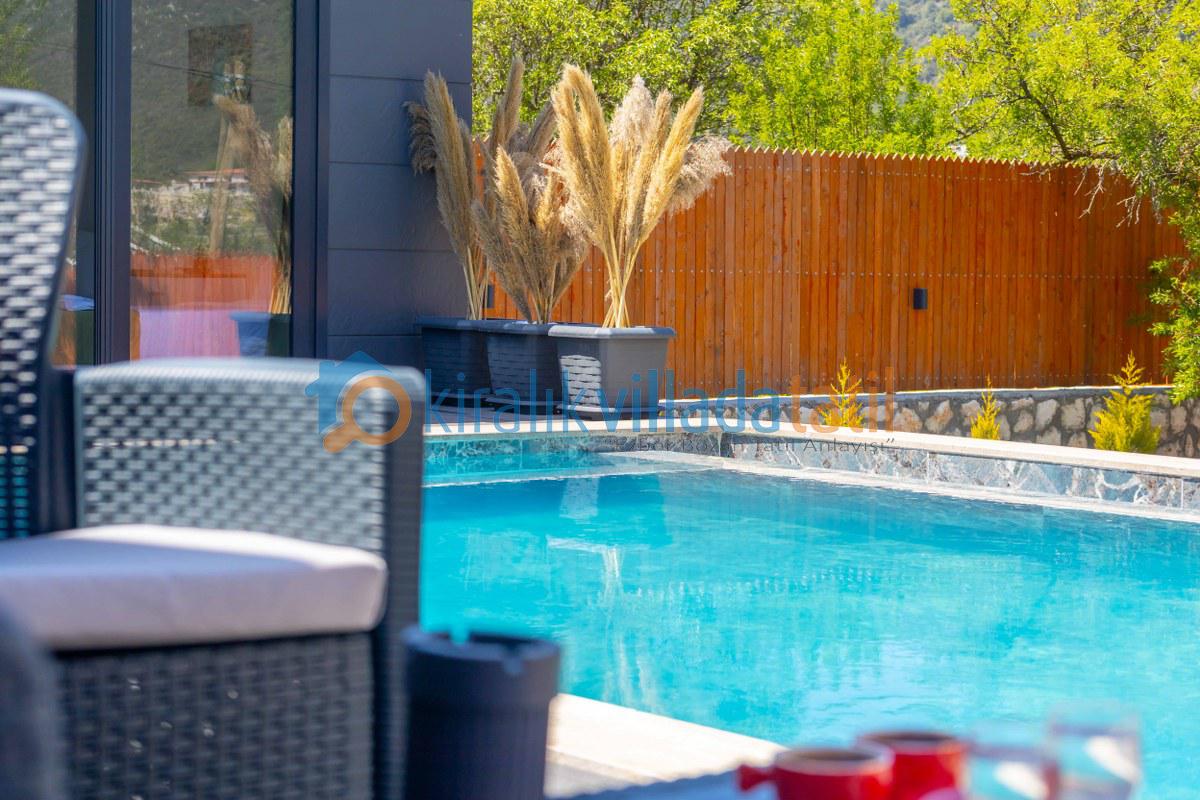 Villamız bu özel konseptin en güzel örneklerinden biridir. Çevresi yüksek duvarlarla korunan bahçesi ve tamamen size özel havuzu sayesinde, dışarıdan görünmeden rahatça güneşlenebilir, dilediğiniz gibi havuz keyfi yapabilirsiniz. Bu özelliğiyle, özellikle muhafazakâr villa veya korunaklı villa arayışında olan aileler ve balayı çiftleri için mükemmel bir tercihtir.