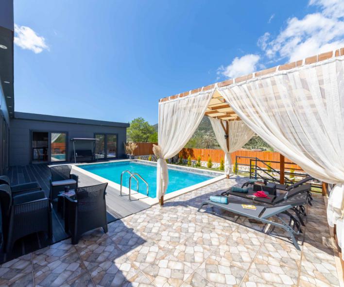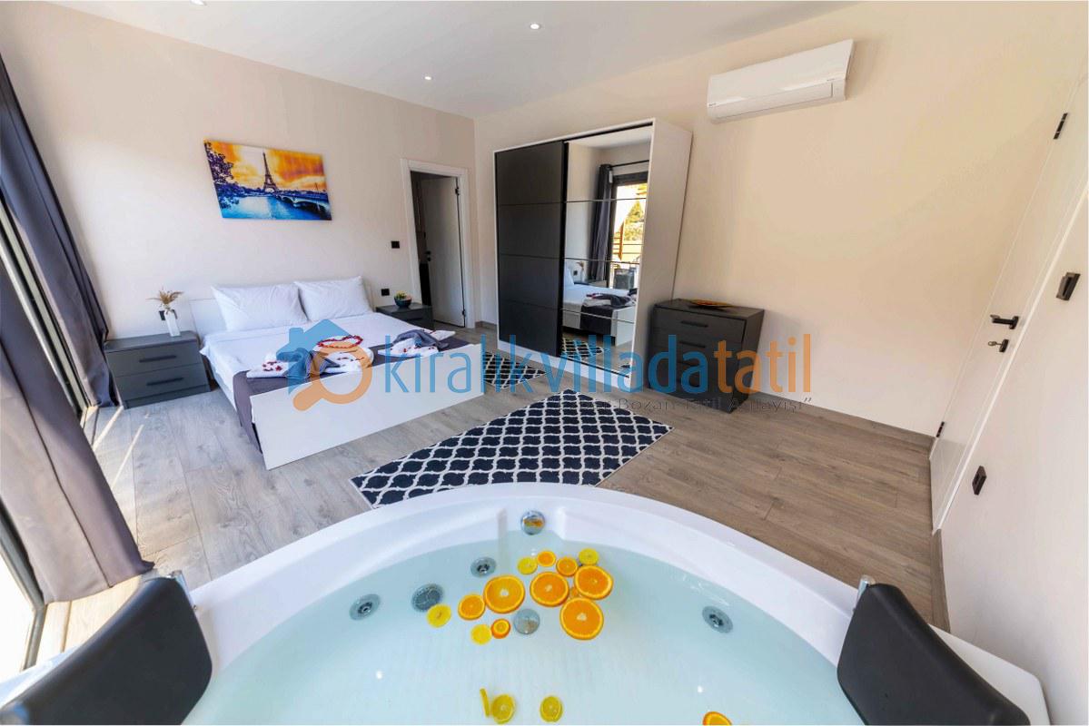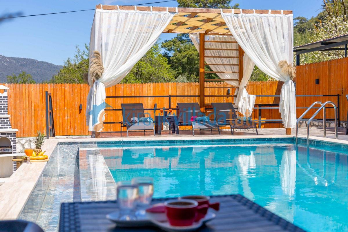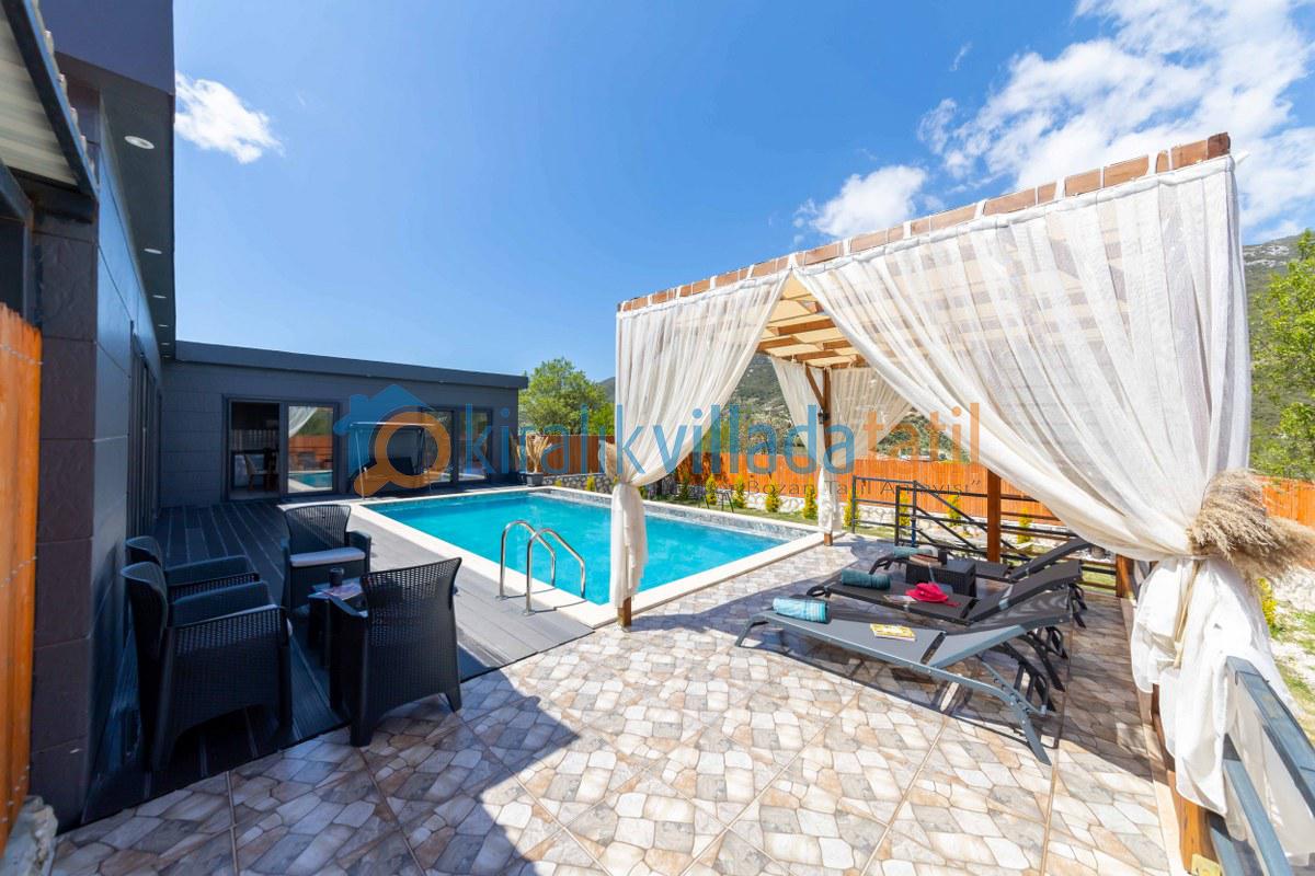 Villamız bu özel konseptin en güzel örneklerinden biridir. Çevresi yüksek duvarlarla korunan bahçesi ve tamamen size özel havuzu sayesinde, dışarıdan görünmeden rahatça güneşlenebilir, dilediğiniz gibi havuz keyfi yapabilirsiniz. Bu özelliğiyle, özellikle muhafazakâr villa veya korunaklı villa arayışında olan aileler ve balayı çiftleri için mükemmel bir tercihtir.