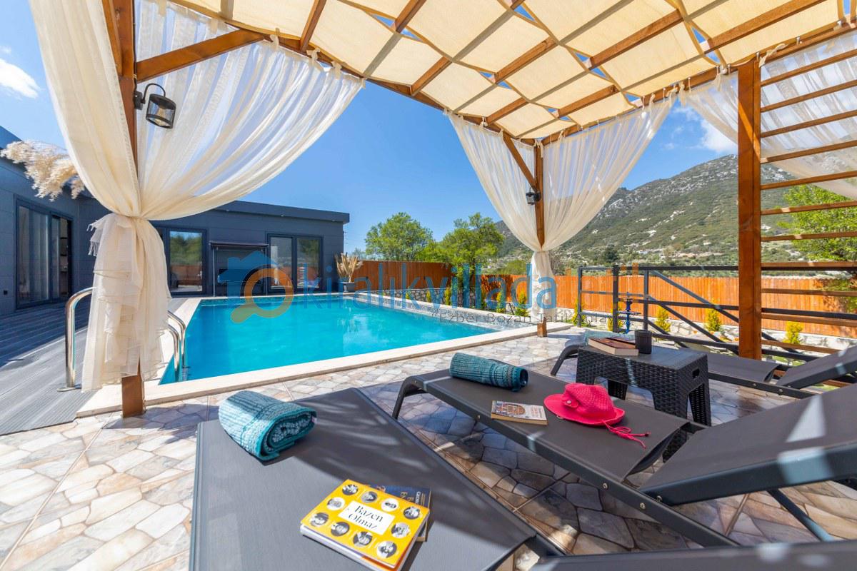 Kiralık Villada Tatil olarak, Kalkan ve çevresinde yer alan en seçkin villalarımızla sizlere konforlu, güvenli ve doğayla iç içe bir tatil deneyimi sunuyoruz. Her biri özenle seçilen villalarımız, hem mahremiyet hem de rahatlık arayan misafirlerimiz için özel olarak tasarlanmıştır.