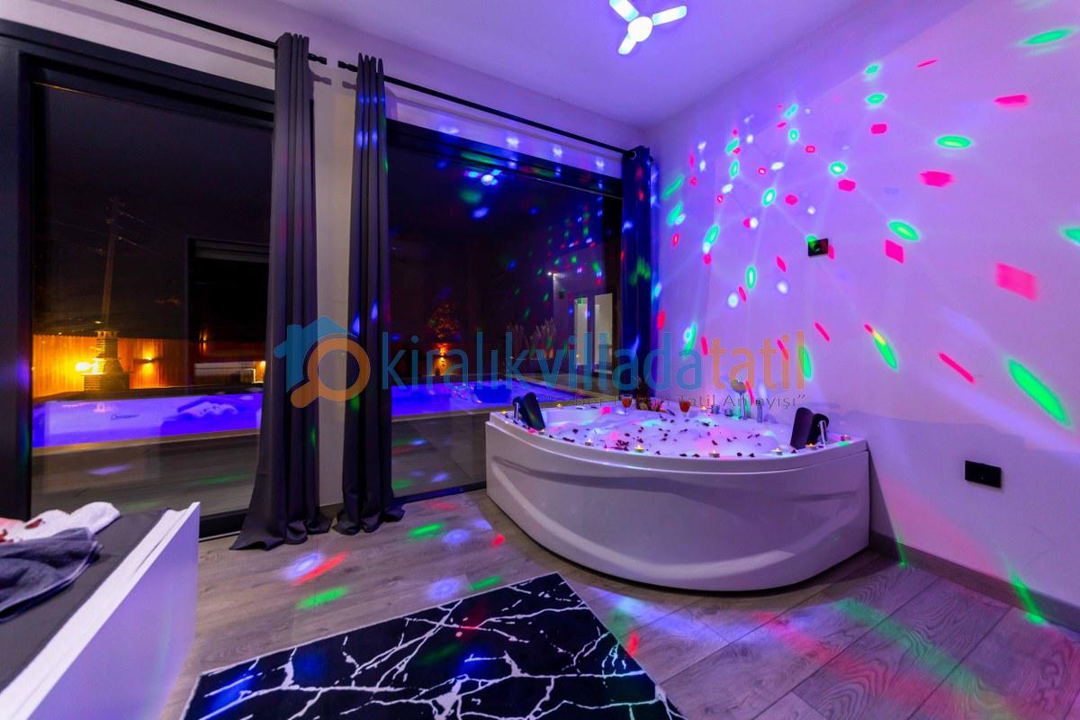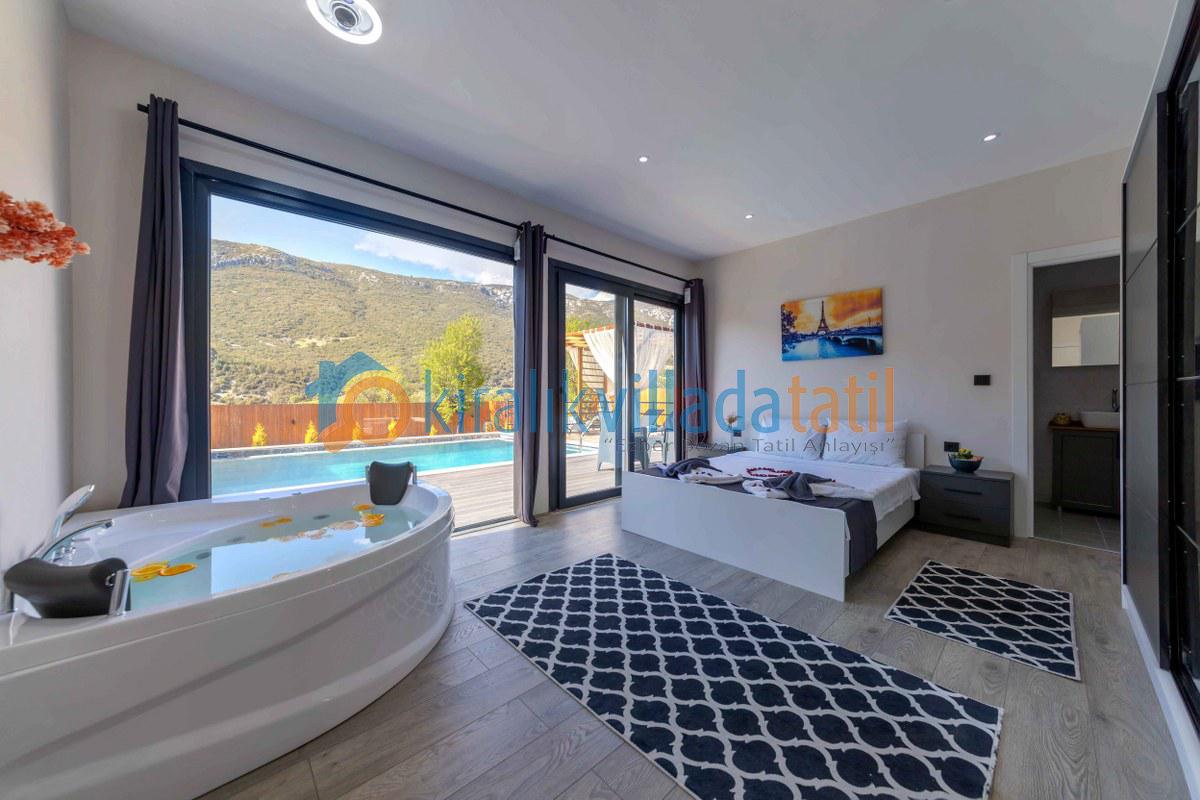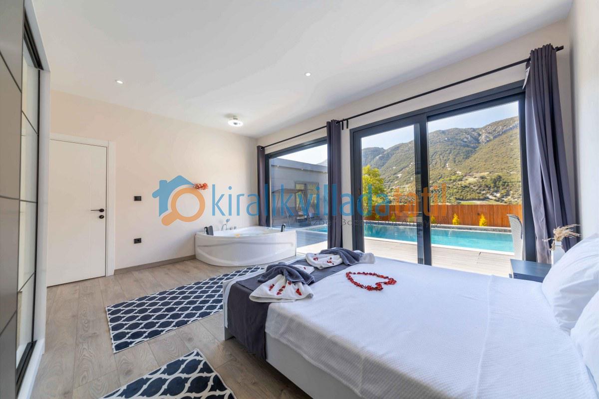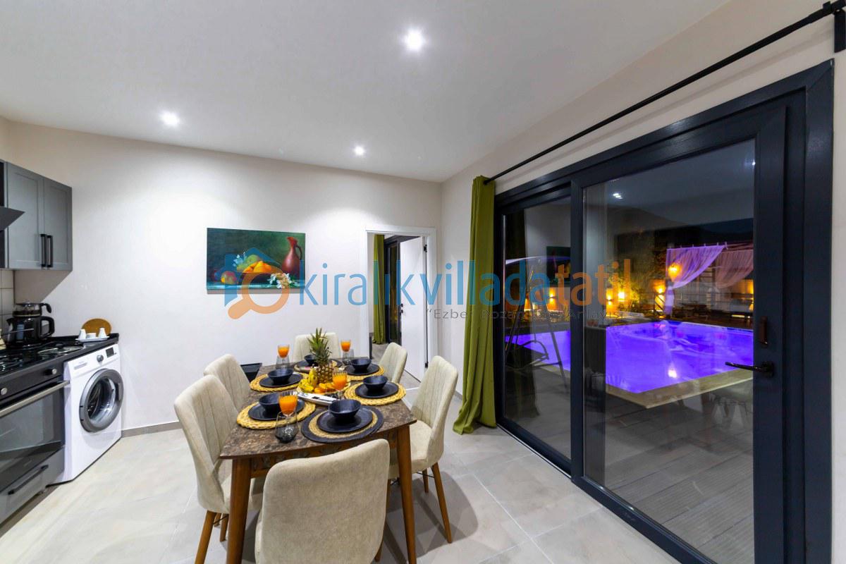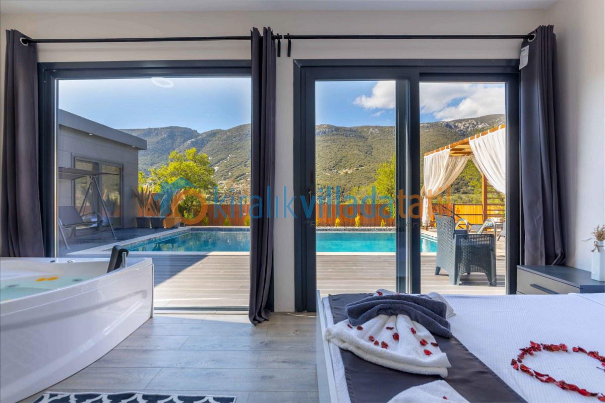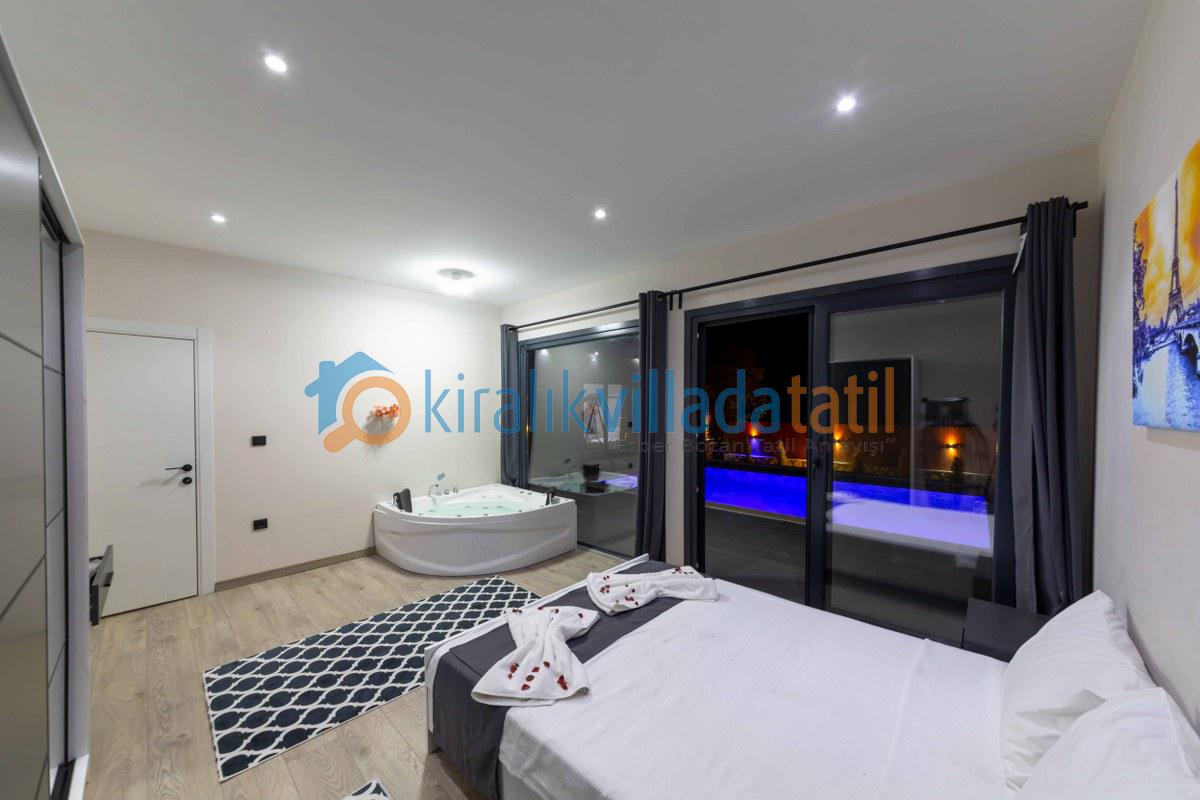 Villamızın iç kısmı modern bir yaşam alanı sunar: ferah salon, tam donanımlı mutfak, konforlu yatak odaları, jakuzi, klima ve geniş cam alanlar sayesinde doğanın güzelliğini evinizin içinden hissedersiniz. Akşamları, barbekü alanında sevdiklerinizle keyifli sofralar kurabilir, yıldızların altında huzurlu anlar yaşayabilirsiniz.