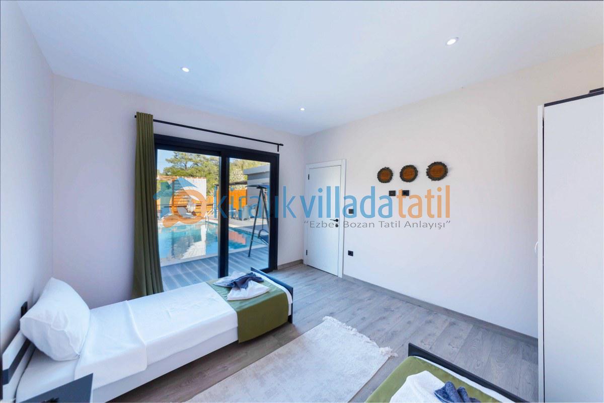 2 yatak odası ve 4 kişilik konaklama kapasitesiyle hem çekirdek aileler hem de balayı çiftleri için uygundur. Geniş havuz terası, çocuk oyun alanı ve doğayla iç içe atmosferiyle, tatilden beklediğiniz huzuru fazlasıyla sunar.