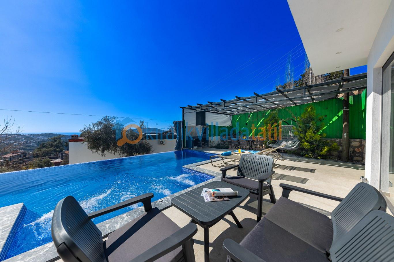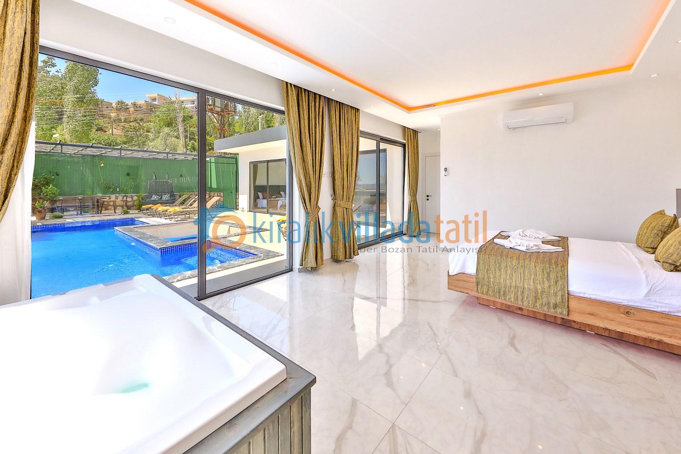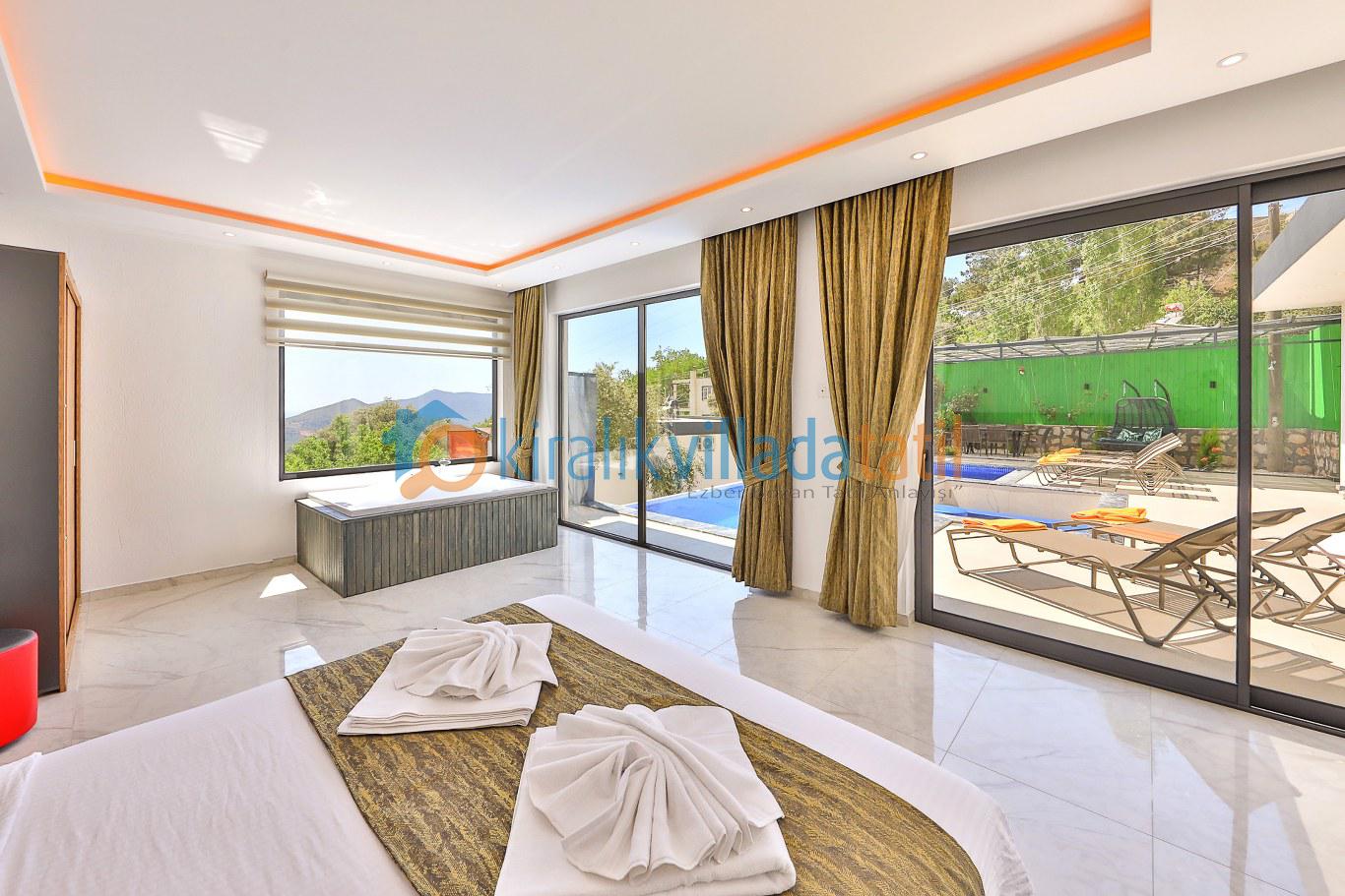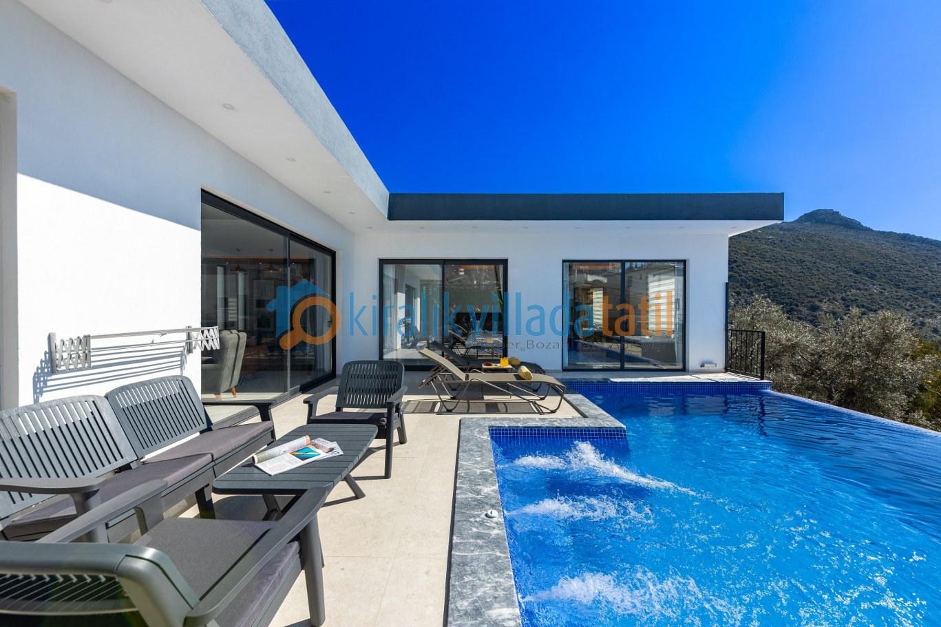 Bununla birlikte, villamızın çevresi de doğal güzelliklerle doludur. Doğa yürüyüşleri yapabilir, çevredeki köyleri ziyaret edebilir ve yöresel lezzetleri tadabilirsiniz. Eğer deniz tatili yapmak isterseniz, Kalkan'ın muhteşem koyları sadece birkaç dakika uzaklıktadır.