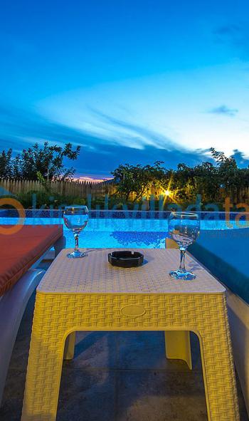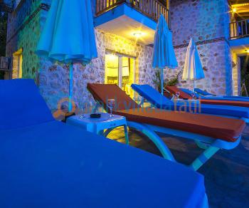 Tamamen taş ve ahşap konsept ile inşaa edilen binamız, köy evlerinin karakteristik özelliklerini taşımaktadır. Taş yapısı sayesinde yazları serin, kışları ise sıcak bir yapıya sahiptir. Asma bahçeleri içinden geçen bir yoldan ulaşılan villamız, geniş havuz terası ve doğa manzarası ile sessiz sakin huzurlu bir tatil yapmak isteyen konuklarımız için en ideal yerlerden biridir. Havuz ve bahçe görüşü engelleyecek şekilde tamamen çitlerle çevrili olup etrafında sizleri rahatsız edebilecek yapılar vs... bulunmamaktadır. Geniş çocuk havuzu, yüzme havuzu, havuz terası ile sizlere ferah bir tatil yapma imkanı sunmaktadır. Yaklaşık 32 metrekarelik geniş yüzme havuzumuz basamaklı giriş olup, kısa boylu yüzme bilmeyen konuklarımız için derinlik 1,48 cm'de tutulmuştur. Küçük çocuklarınız da 3,5 x 2 metre ebadındaki geniş çocuk havuzunda ve salıncakta doyasıya eğlencenin tadına varacaklardır.