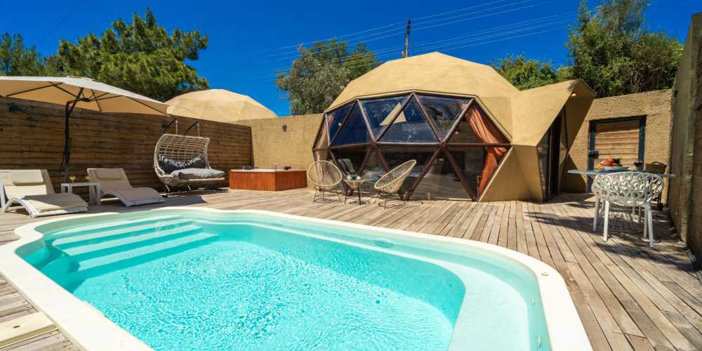 Bu villaların en güçlü farkı glamping kültürünün doğallığını villa konforuyla birleştirmesidir. Standart çadır konseptlerinden farklı olarak kubbe villalarımız Türkiyede ilk defa 7 metre çap, 4.30 metre kubbe yüksekliği ve 38 m ahşap yapı ile özel olarak üretilmiştir. Tasarım sürecinde hem güvenlik hem de iklim koşulları düşünülmüş doğanın içinde olmanıza rağmen rahatlık tarafı hiç geri plana atılmamıştır. her villanın ayrı havuz terası bulunmasıda konsepti daha özel ve daha kişisel hale getirir.