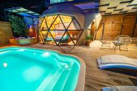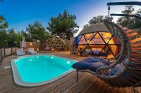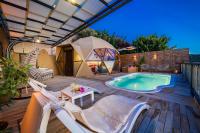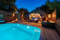 Ayrı ayrı havuz teraslarına sahip olan kubbe tipi villalarımız, glamping kültürü ile çoğalan çadır konseptlerine nazaran Türkiye’de ilk olarak 7 mt çapında ve 4,30 kubbe yüksekliği ile 38 m2 olarak AHŞAP olarak imal edilmiştir. Binalarımızda güvenlik ve iklim endişesi olmadan rahatlıkla kalabilirsiniz.