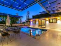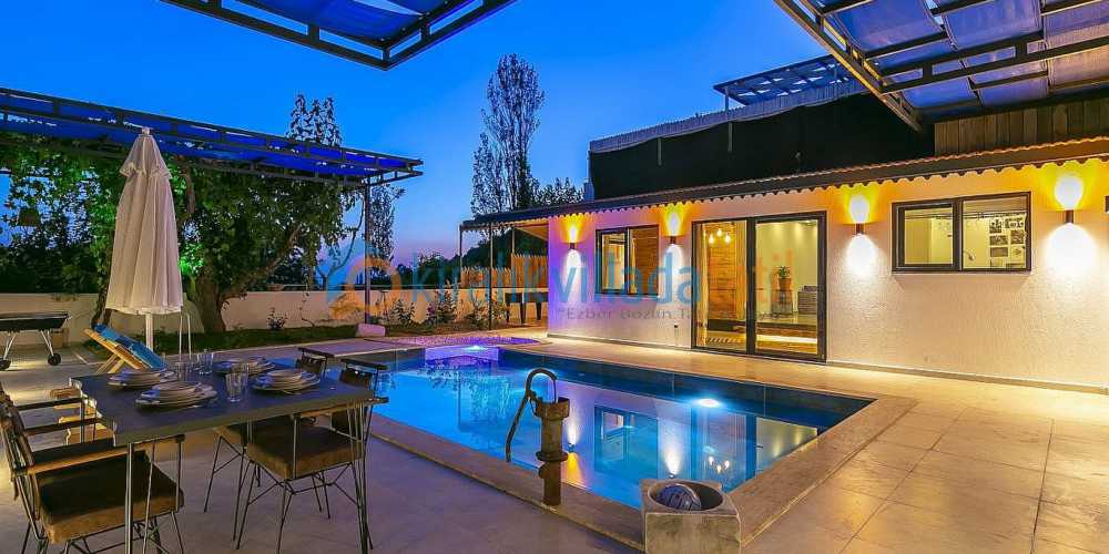 Havuz alanı tamamen korunaklı olarak planlanmış olup muhafazakar tatil anlayışına uygun bir kullanım sunar. 7 x 4 metre ölçülerindeki özel yüzme havuzu 1,55 metre derinliğe sahiptir ve gün boyu rahatça vakit geçirilebilecek bir alan oluşturur. Bu yönüyle villa, hem korunaklı villa hem de muhafazakar villa arayışında olan balayı çiftleri için güvenli ve konforlu bir ortam sunar.
