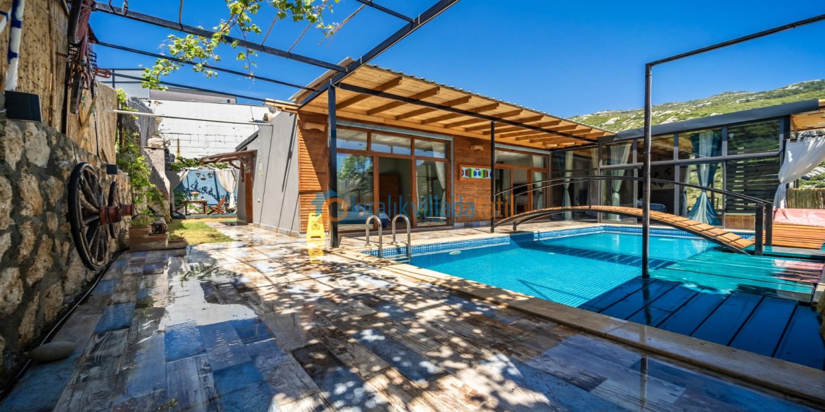 Dış alanda geniş bir havuz terası, jakuzi, oturma köşeleri ve arka bahçede salıncak bulunmaktadır. Otantik detaylarla hazırlanan bahçe ve iç mekân tasarımı, villayı doğayla uyumlu ve sıcak bir yaşam alanına dönüştürür. Akşam saatlerinde doğanın sesleri eşliğinde dinlenmek, villada konaklamanın en keyifli anları arasında yer alır.