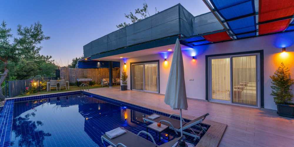 Kalkan İslamlar bölgesinde yer alan bu korunaklı villa izole yapısı ve özel detaylarıyla muhafazakar villa tercih eden misafirler için huzurlu ve keyifli bir tatil alternatifi sunar
