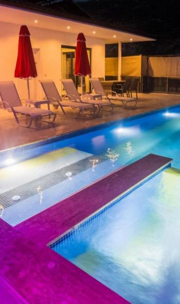 Modern ve keyifli dekorasyonu, Renkli bir havuzu olan villamızın, iç dizaynı yine aynı şekilde zevkli ve konforlu bir şekilde tasarlanmıştır. Villaızın içerisinde iki yatak odası, iki adet banyo bulunmaktadır. Birinci yatak odası içerisinde çift kişilik yatak, klima ve ebeveyn banyosu bulunmaktadır. İkinci yatak odası içerisinde iki adet tek kişilik yatak, klima ve ebeveyn banyosu bulunmaktadır.