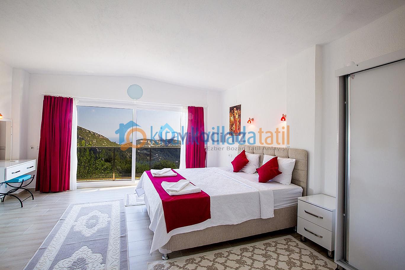 Kalkan’ın tertemiz havası ve doğal güzellikleriyle öne çıkan İslamlar Köyünde yer alan bu özel villamız, 2 süit yatak odasıyla 4 kişilik kapasite sunar. Sessiz, sakin bir ortamda doğayla iç içe vakit geçirmek isteyen aileler ve muhafazakâr misafirler için ideal bir seçenektir.