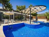Villayı benzerlerinden ayıran en önemli detaylardan biri yüzme havuzunun içerisinde yer alan bali tarzı oturma ve yemek alanıdır Su seviyesinde konumlandırılan bu özel platform günün her saatinde keyifli vakit geçirmenizi sağlarken tatilinize farklı bir atmosfer katıyor. Yaklaşık 50–55 m² genişliğe sahip yarım oval formdaki havuz uzun yüzme mesafesi ve ferah yapısıyla hem yüzmeyi sevenler hem de dinlenmek isteyenler için oldukça konforludur.