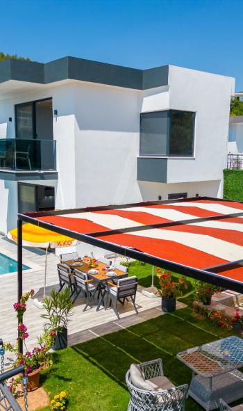 Villamızın özel yüzme havuzu, yaz sıcaklarında serinlemek isteyenler için vazgeçilmez bir cazibe merkezi olacak. Güneşlenme terasımızda güneşin tadını çıkarırken, aynı zamanda muhteşem manzaranın keyfini sürebilirsiniz. Yemyeşil bahçemizde doğayla iç içe keyifli yürüyüşler yapabilir, akşamları mangal keyfi yapabilirsiniz.