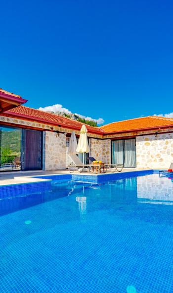 Kalkan şehir merkezine 9 km mesafede olan villamız İslamlar köy merkezine market ve restoranlara 3 km mesafededir. Geniz havuz ve havuz terasında eğlenceli bir tatil sizleri beklemektedir. Havuz terası önünde bulunan yeşil alanla çocuklarınız rahat güvenli bir şekilde oyunlarını oynayabilecekler.