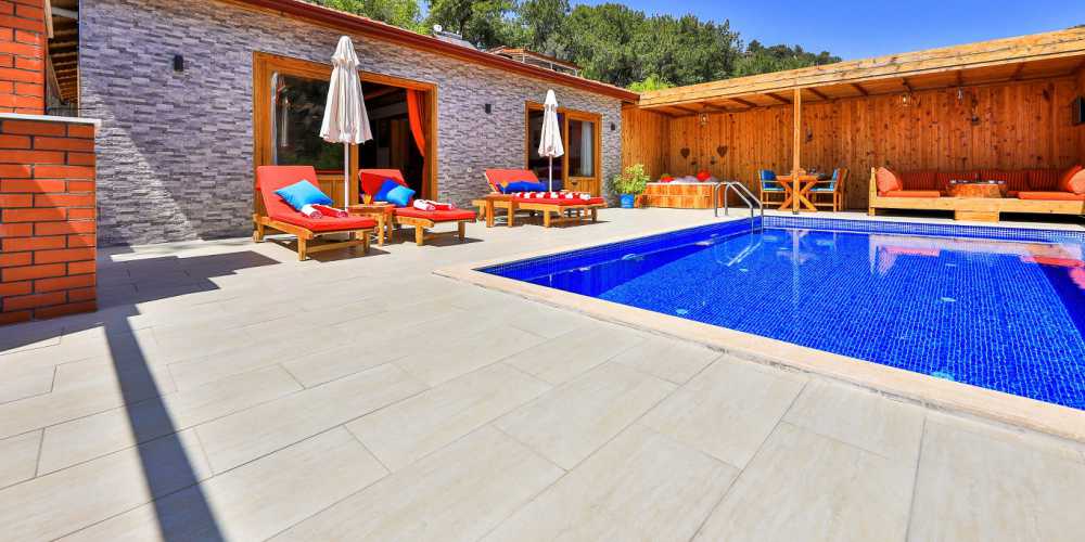 villanın geniş havuz terası tamamen muhafazakar villa konseptine uygun hale getirilmiş olup dışarıdan görünmeyecek şekilde düzenlenmiştir. bu durum muhafazakar aillalerimiz ve balayı çiftlerimi içinde uygun seçenekte bir villadır şark köşesi otantik yemek alanı şezlong ve gölgeliklerle donatılmış bu alan güne başlamaktan akşam manzarasını izlemeye kadar günün her saatinde keyifli bir atmosfer sunarken balayı villası arayan çiftler için de izole bir ortam yaratır.