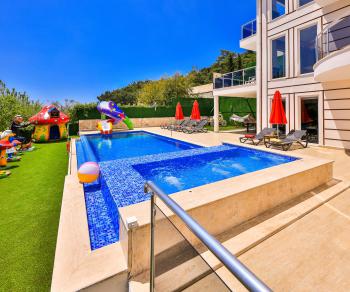 Bu ilan ait Detaylı açıklama ve bilinmesi gereken detaylarKalkan'ın İslamlar köyünde yer alan bu lüks villa, on kişilik kapasitesi ile geniş aileler ve arkadaş grupları için ideal bir tatil mekanı sunmaktadır. Villamız, geniş bir yüzme havuzu ve hem açık hem de kapalı jakuzisi ile misafirlerine konfor ve lüksü bir arada sunmaktadır. Beş yatak odası da suit olan villamızın havuzu ısıtma özelliğine sahiptir ve dışarıdan görünmemektedir. Bu özellik, özellikle muhafazakar aileler için büyük bir avantaj sağlamaktadır. Villamızda, misafirlerimizin keyifli ve eğlenceli bir tatil geçirmeleri için masa tenisi bulunmaktadır. Ayrıca, bahçede bulunan hamak, misafirlerimizin dinlenmesi ve huzurlu anlar geçirmesi için ideal bir alan sunmaktadır. Villa, modern ve şık tasarımıyla göz kamaştırırken, sunduğu olanaklar ile de unutulmaz bir tatil deneyimi yaşatmayı hedeflemektedir. Villanın konumu, İslamlar köyünün huzur verici doğası içinde yer almakta olup, misafirlere şehir stresinden uzak, rahatlatıcı bir tatil sunmaktadır. Villamızın çevresindeki doğal güzellikler, doğa yürüyüşleri ve keşifler için de mükemmel bir fırsat sunmaktadır. Bu lüks villada konaklarken, hem dinlenmenin hem de eğlencenin tadını çıkarabilir, sevdiklerinizle birlikte keyifli anılar biriktirebilirsiniz. Villamız, tüm misafirlerimize unutulmaz bir tatil vaat etmektedir.