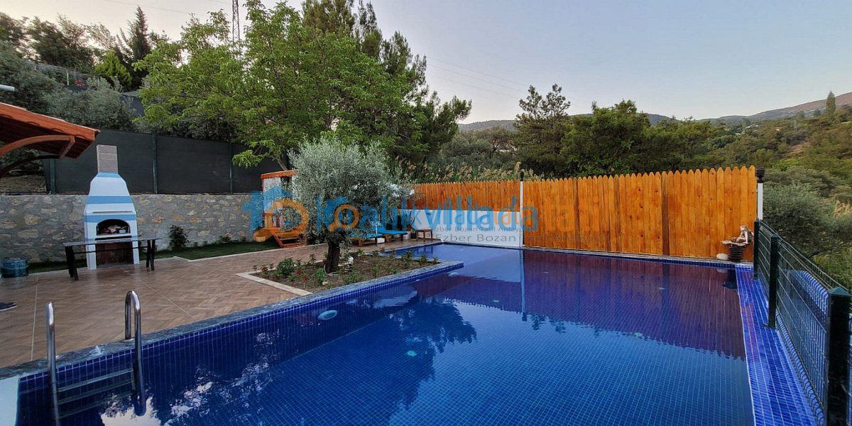 Havuz alanının dışarıdan görünmeyecek şekilde kapalı olması, özel ve rahat bir kullanım sunmaktadır. Bahçe bölümünde şezlonglar ve oturma grubu yer almakta olup gün boyu keyifli vakit geçirebileceğiniz bir alan oluşturulmuştur. Doğa içinde villa konsepti sayesinde huzurlu ve sakin bir tatil deneyimi yaşayabilirsiniz.