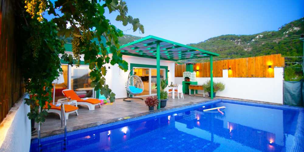 Kalkan İslamlar bölgesinde yer alan bu balayı villa korunaklı yapısı ve muhafazakar villa konsepti ile villa kiralama sürecinde romantik ve gözlerden uzak bir kiralık villa arayan misafirler için öne çıkan seçeneklerden biridir.