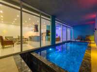 Suit konseptinde tasarlanan bu özel yapı alt katta yer alan başka bir villa ile ortak kullanım alanına sahip değildir girişler ve kullanım alanları tamamen bağımsızdır havuz alanı korunaklı yapıda olup dışarıdan görünmemektedir.