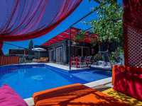 Geniş bahçesi villanın en dikkat çekici alanlarından biridir korunaklı şekilde tasarlanan özel yüzme havuzu dışarıdan görünmeyecek şekilde planlanmış olup mahremiyete önem veren misafirler için güvenli bir kullanım sağlar bahçede salıncak ve langırt gibi detaylar bulunmakta bu sayede tatil süresince keyifli vakit geçirebileceğiniz sosyal alanlar sunulmaktadır doğa içinde konumlanan villa hem romantik hemde huzurlu bir atmosfer arayan çiftler için ideal bir ortam oluşturur.