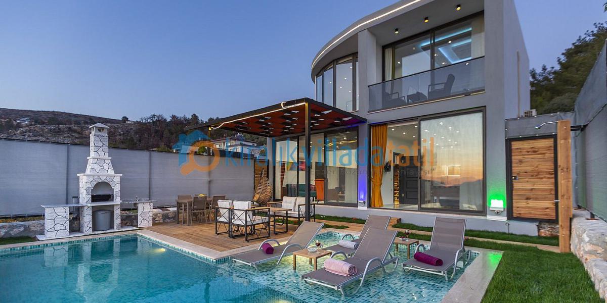 Bu ilan ait Detaylı açıklama ve bilinmesi gereken detaylarKalkan ' ın İslamlar Mevkii ' nde bulunan doğa ve deniz manzaralı bir villadır. Yazlık villamız 4 kişilik konaklama kapasitesine sahip olup balayı çiftleri ve çekirdek aileler için idealdir. Yazlık villamızın suıt yatak odasında yorgunluğunuzu atabileceğiniz lüks bir jakuzi mevcuttur. Kiralık villamız Modern Amerikan mutfaklı olup salonu ise sade ve şık dizayn edilmiştir. Evinizde kullanabileceğiniz tüm araç ve gereçler mevcuttur. Villamız ; 2022 yılı modern ve lüks mimarisiyle dikkatleri üzerine çekmektedir. Suıt odaları ve jakuzisi ile konforlu olmasının yanı sıra lüks bir tatil imkanı da sunan villamızda ; doğanın içinde , kuş seslerini duyabileceğiniz ağaçların oluşturduğu panoramik deniz manzarasını seyredebileceğiniz bir konuma sahiptir. Huzurlu bir atmosferin içinde bulunan villamız korunaklı ve dışarıdan görünmeyecek şekilde tasarlanan havuzunuzun tadını çıkarabilirsiniz. Sevdiklerinizle keyifli akşamlar için barbekü mevcuttur. Tatilinizi huzur dolu bir ortamda geçirmek istiyorsanız Villamız bu tatil için doğru adres.