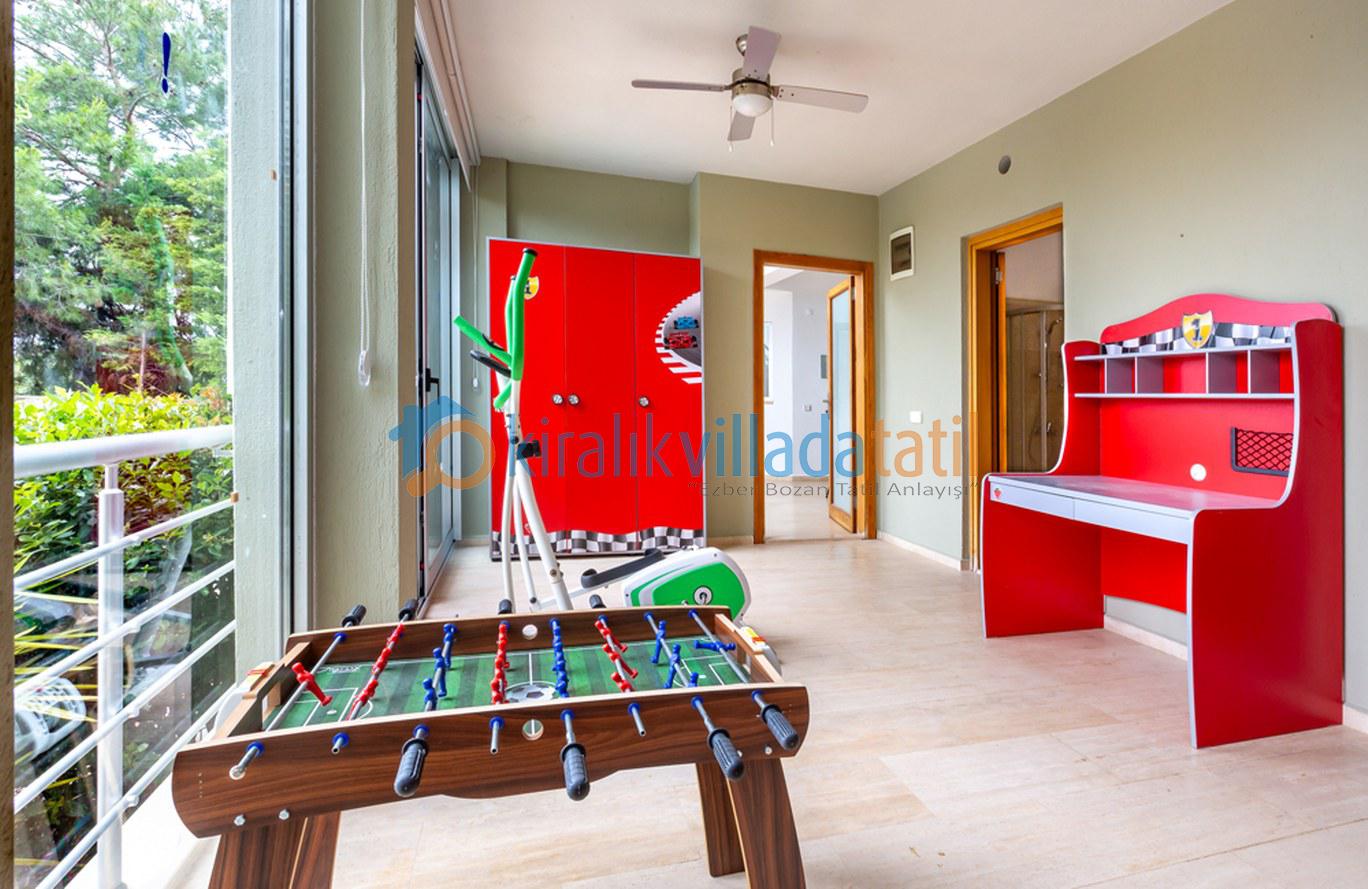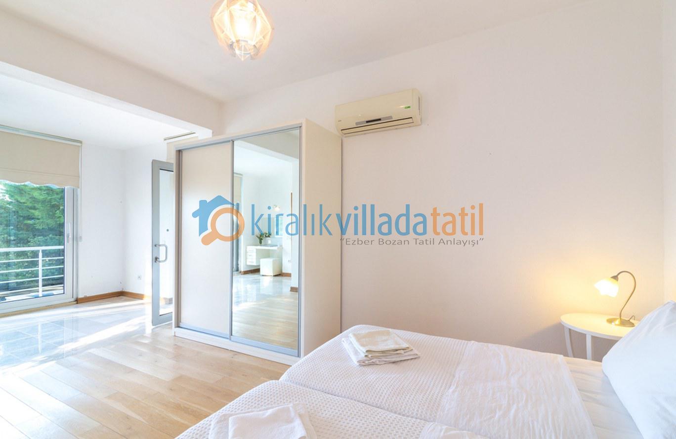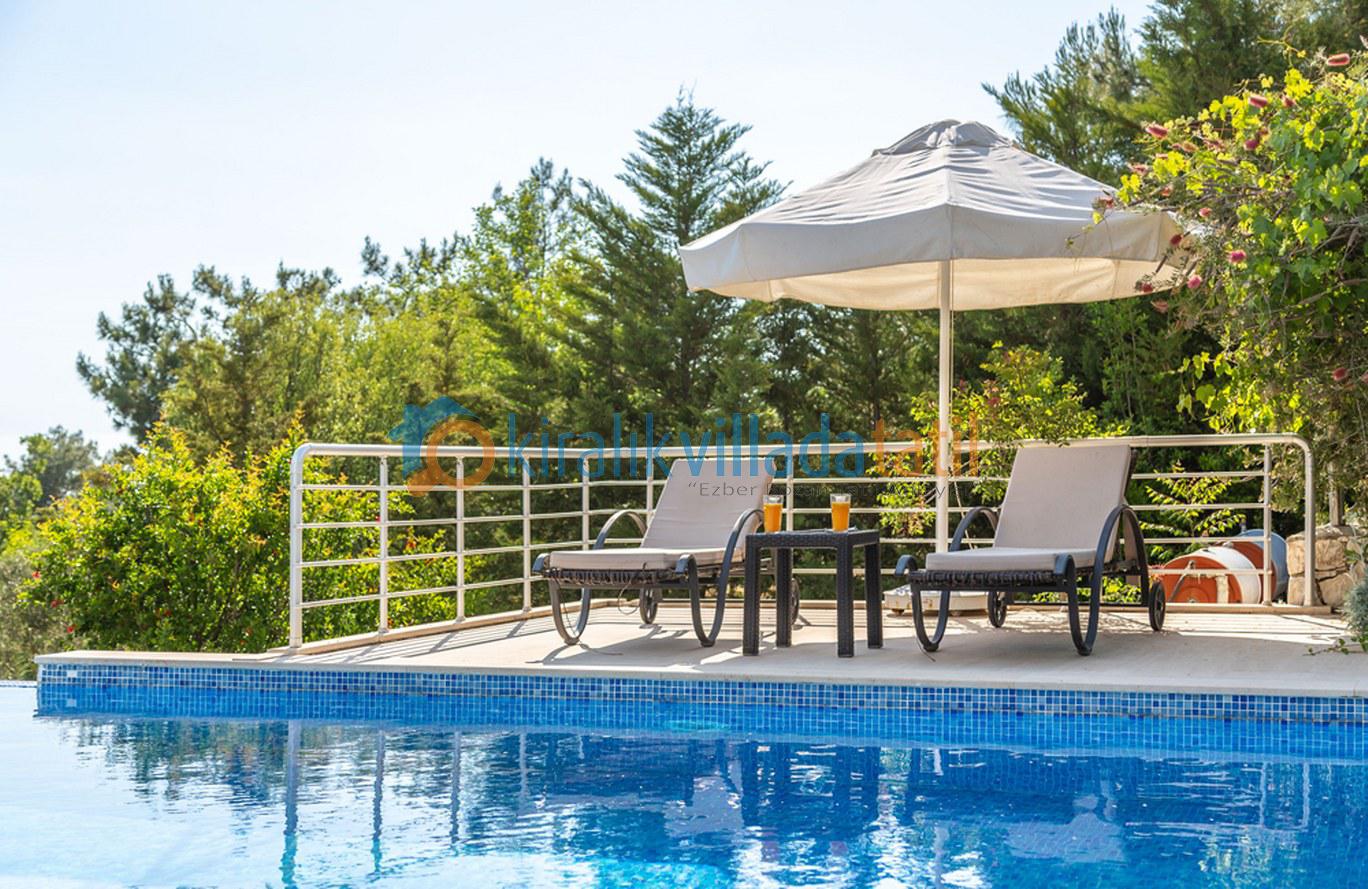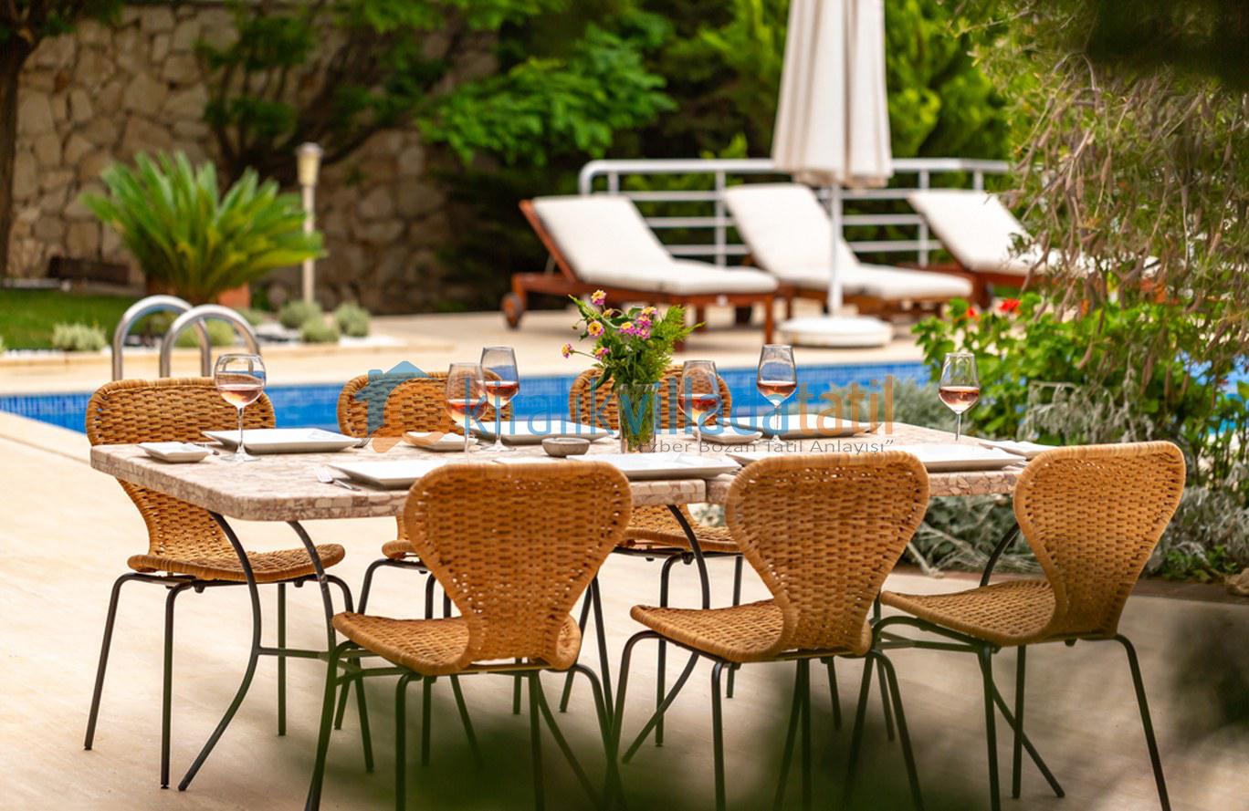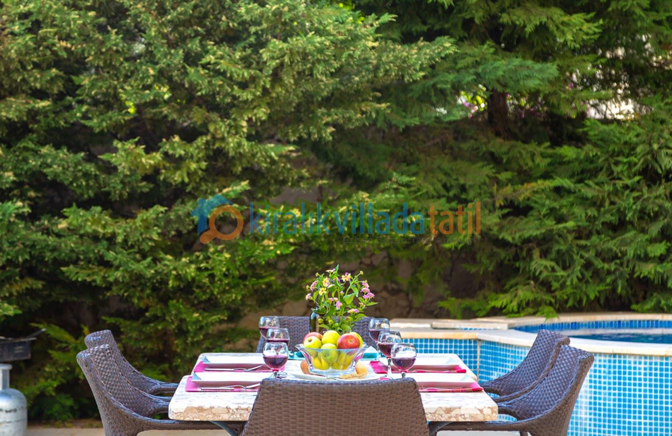 Korunaklı yapıya sahip olan villamızın havuz ve bahçe alanı dışarıdan görünmeyecek şekilde planlanmıştır. Bu özelliği sayesinde korunaklı villa ve muhafazakar villa konseptine uygun bir konaklama imkanı sağlar. Çocuklu aileler için geniş ve güvenli bir alan sunarken, gözlerden uzak tatil yapmak isteyen misafirler için de rahat bir ortam oluşturur.