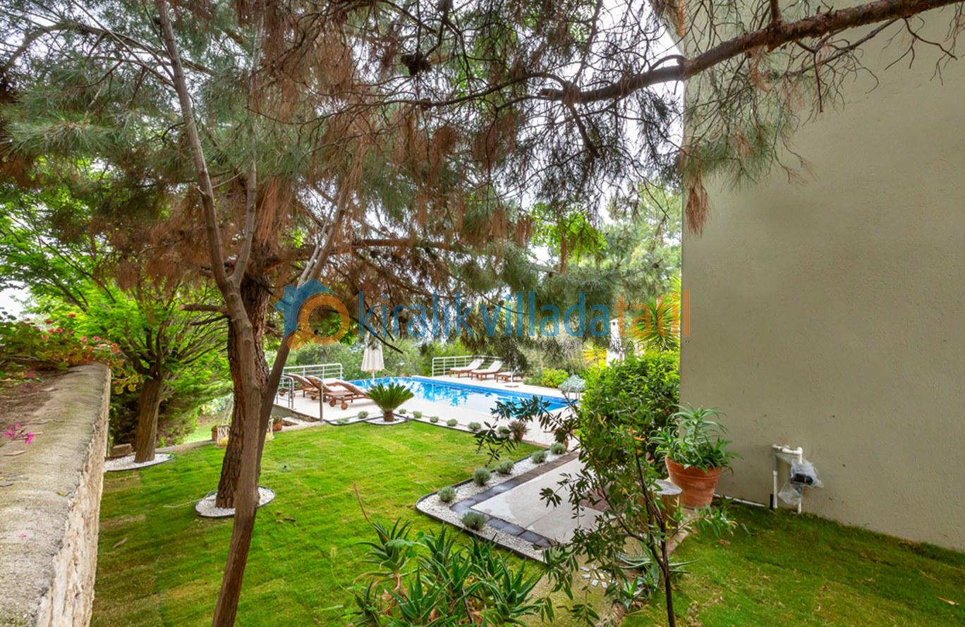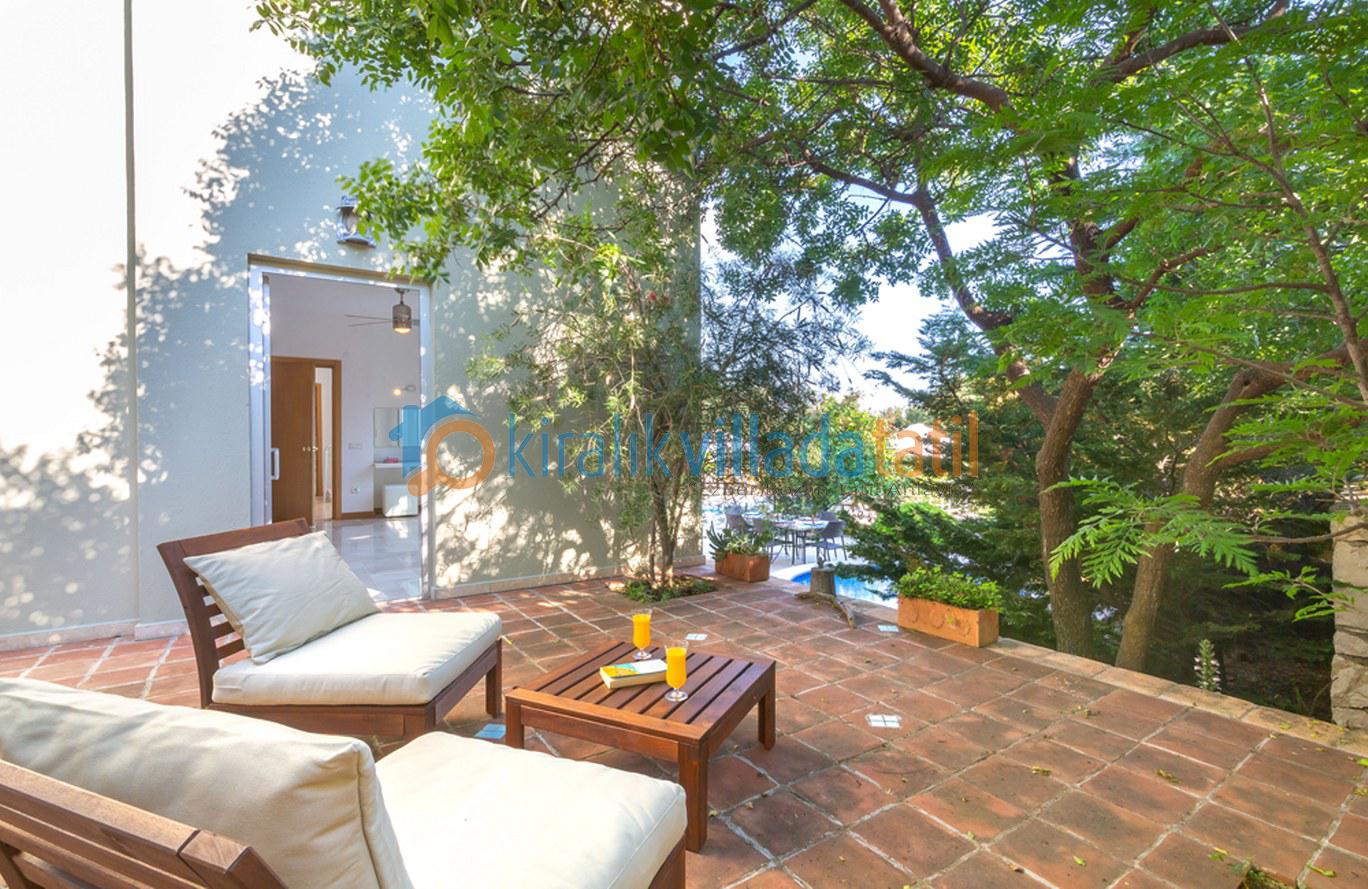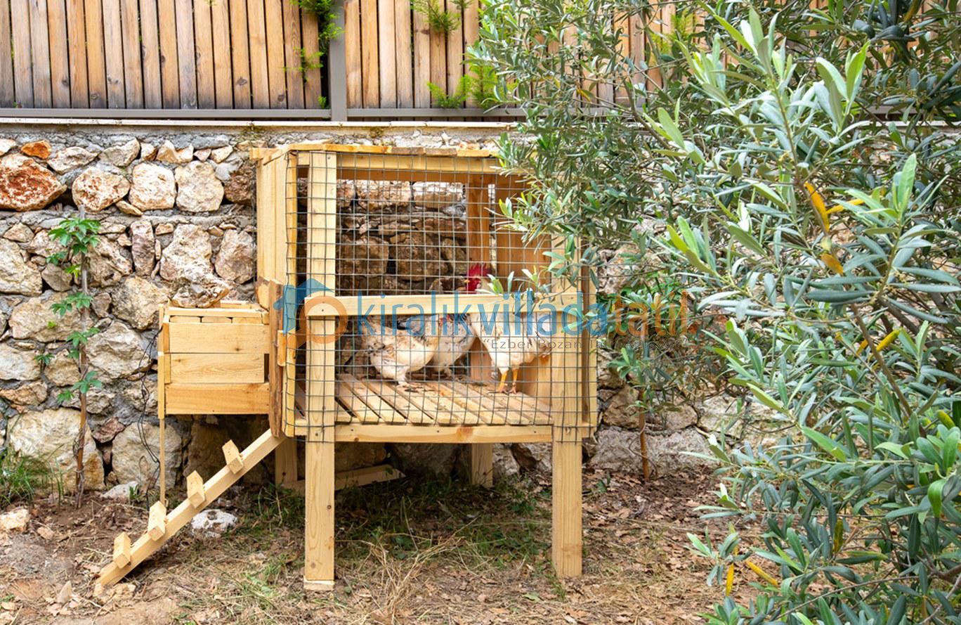 Oldukça büyük bir bahçe alanına sahip olan villada meyve ağaçları ve doğal yaşamı destekleyen detaylar ön plandadır. Gün boyu kuş sesleri eşliğinde vakit geçirebileceğiniz bahçede mangal köşesi, salıncak ve dinlenme alanları bulunmaktadır. Doğa içinde villa arayışında olan misafirler için gerçek anlamda huzurlu ve samimi bir ortam sunmaktadır.