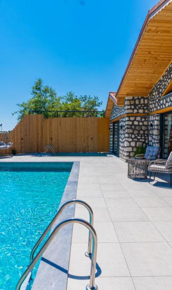 Villamız, sadece iç mekan konforuyla değil, aynı zamanda dış mekanında da özel bir atmosfer sunmaktadır. Bahçede yer alan özel havuz, güneşlenme terası ve oturma alanları, konuklara özel ve keyifli bir tatilin kapılarını aralamaktadır. Ayrıca, köyün etrafındaki doğal güzellikler ve aktivite seçenekleri, misafirlere unutulmaz bir tatil deneyimi yaşatmaktadır.