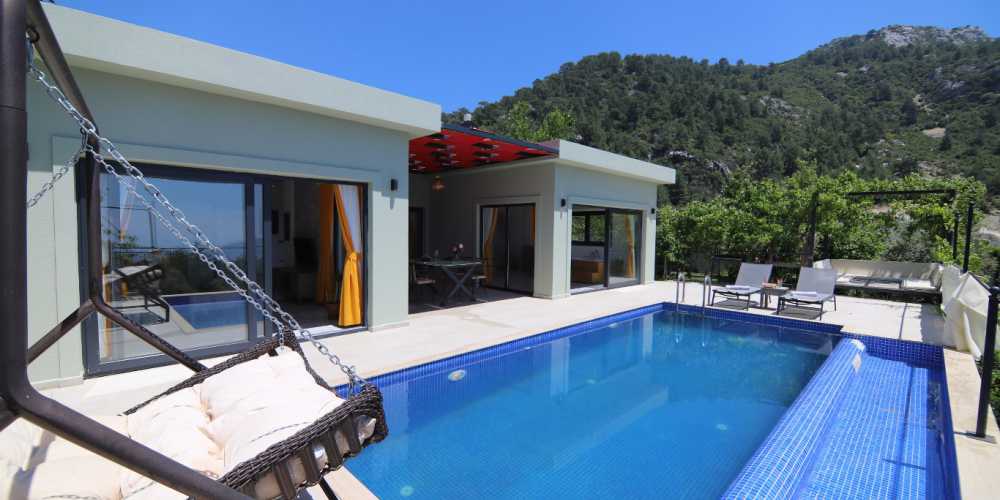 Kalkan İslamlar’ın doğa ile iç içe atmosferinde yer alan bu villa, özellikle mahremiyet sunan bir balayı villa tercih eden çiftler için oldukça uygun bir villa kiralama alternatifidir. Doğa içerisinde romantik ve huzurlu bir kiralık villa tatili geçirmek isteyen misafirler için konforlu bir konaklama imkânı sunmaktadır.