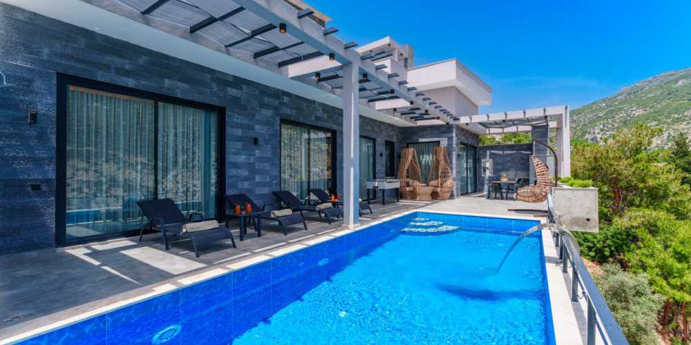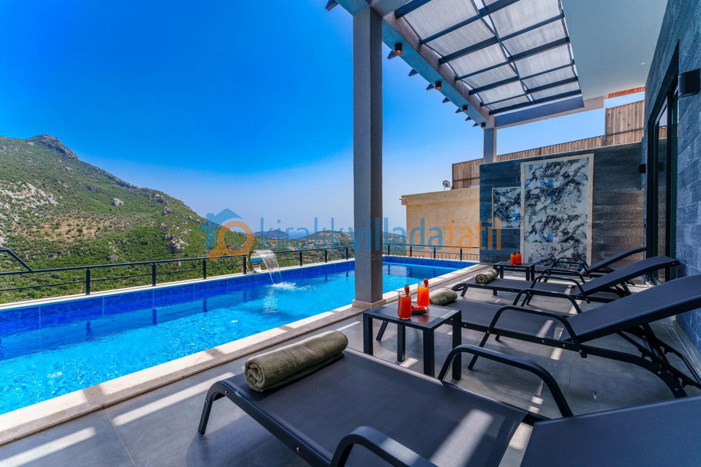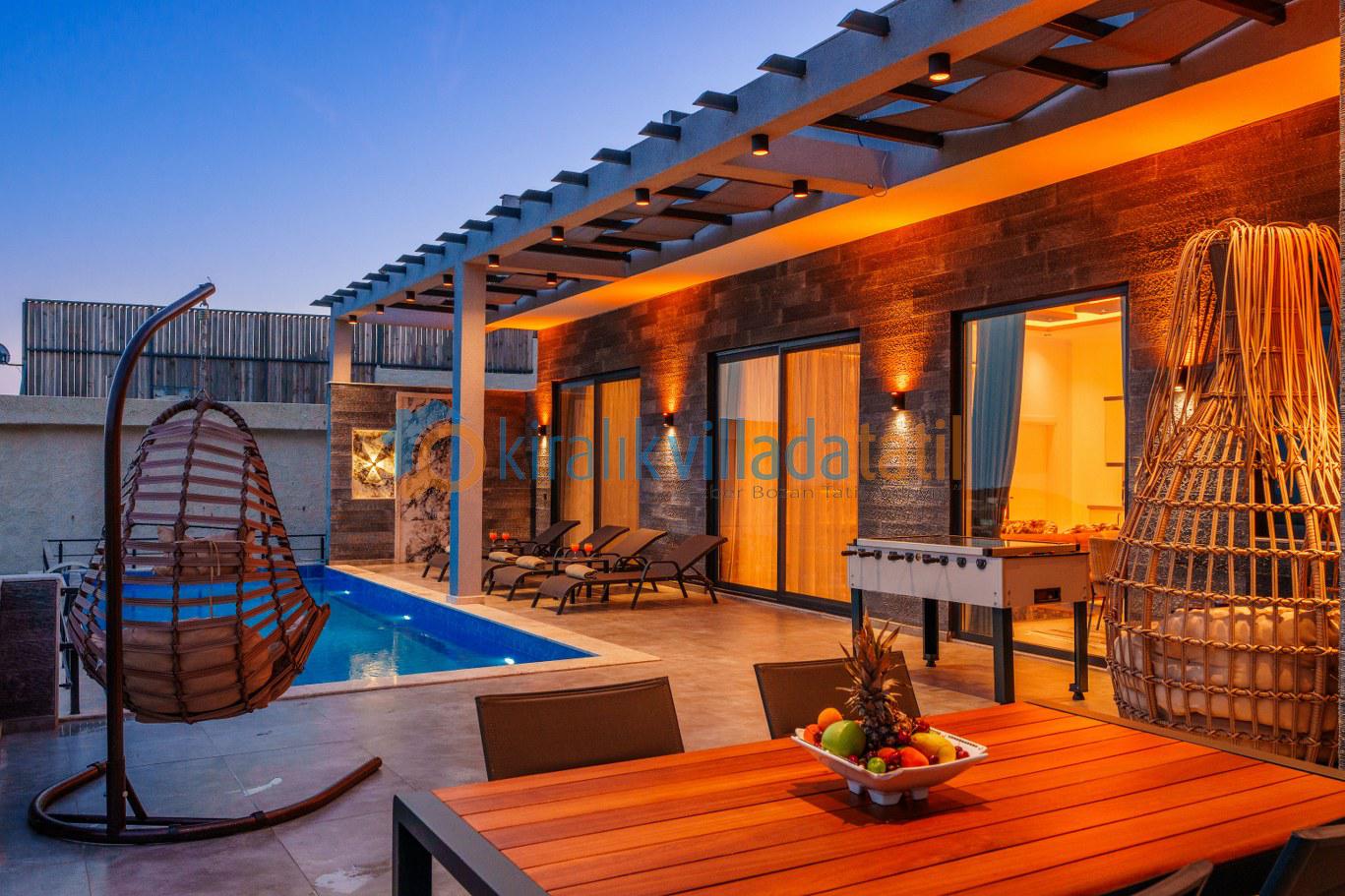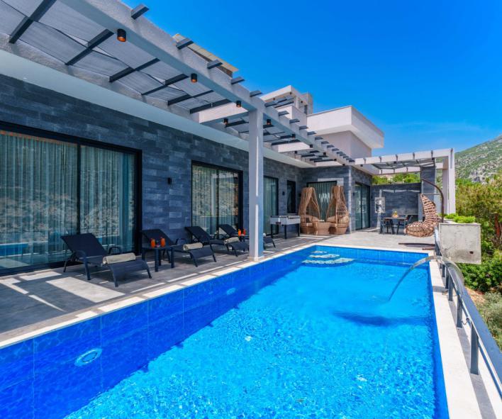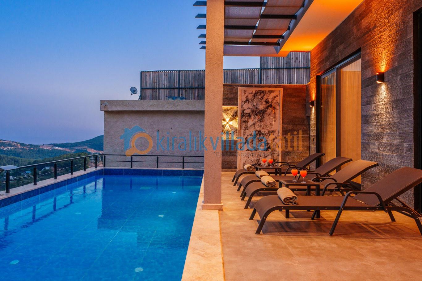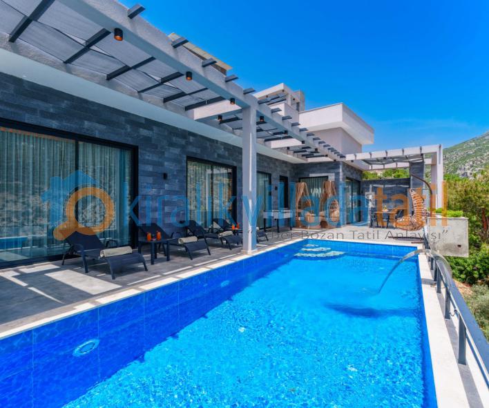 Güneşlenme terası, şezlonglar ve geniş havuz alanı gün boyu keyifli zaman geçirmenizi sağlar. Denize yakın konum avantajı sayesinde bölgedeki deniz manzaralı villa seçenekleriyle aynı kategoride tercih edilen konaklama tiplerindendir.
