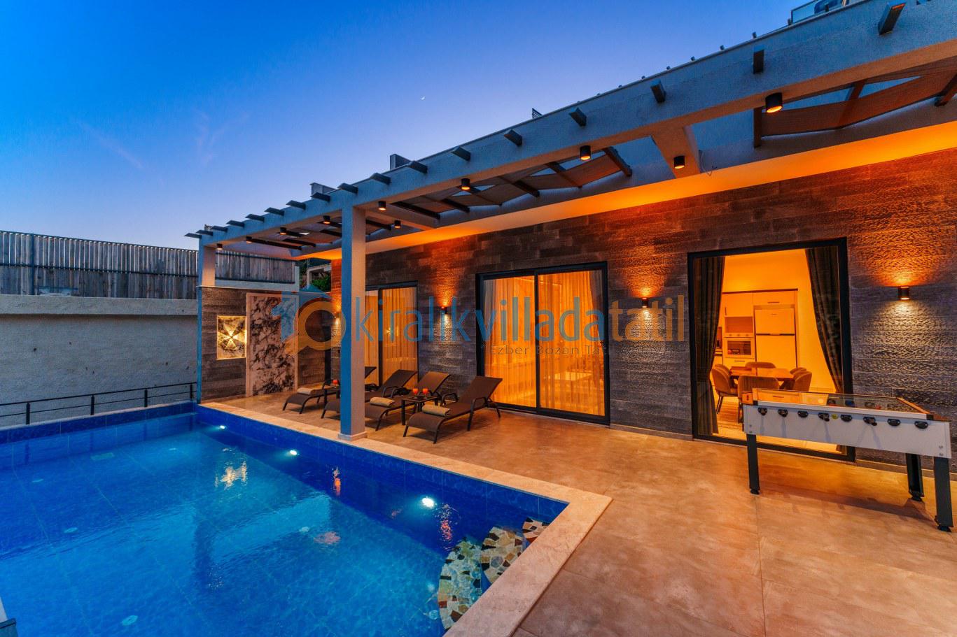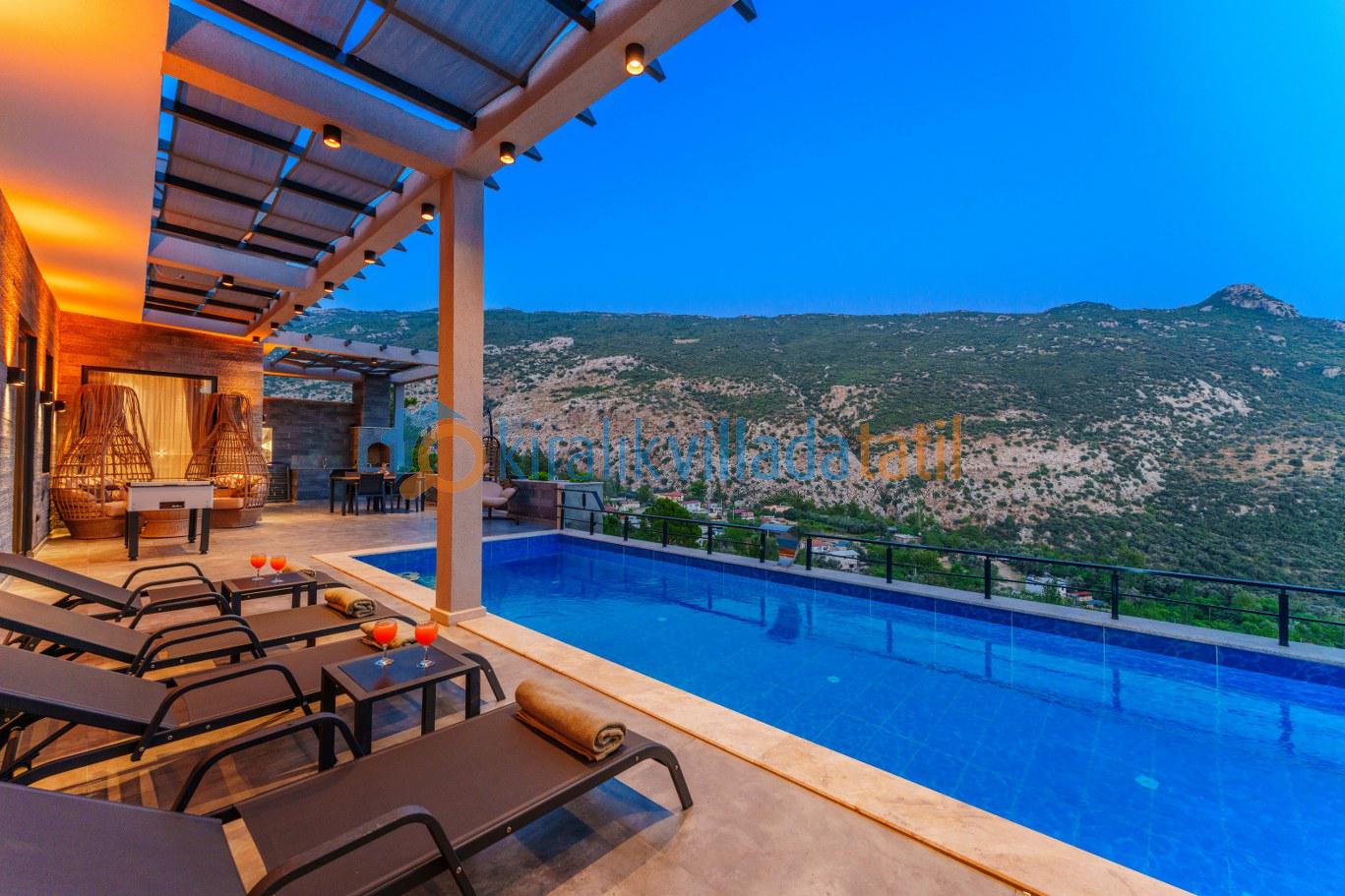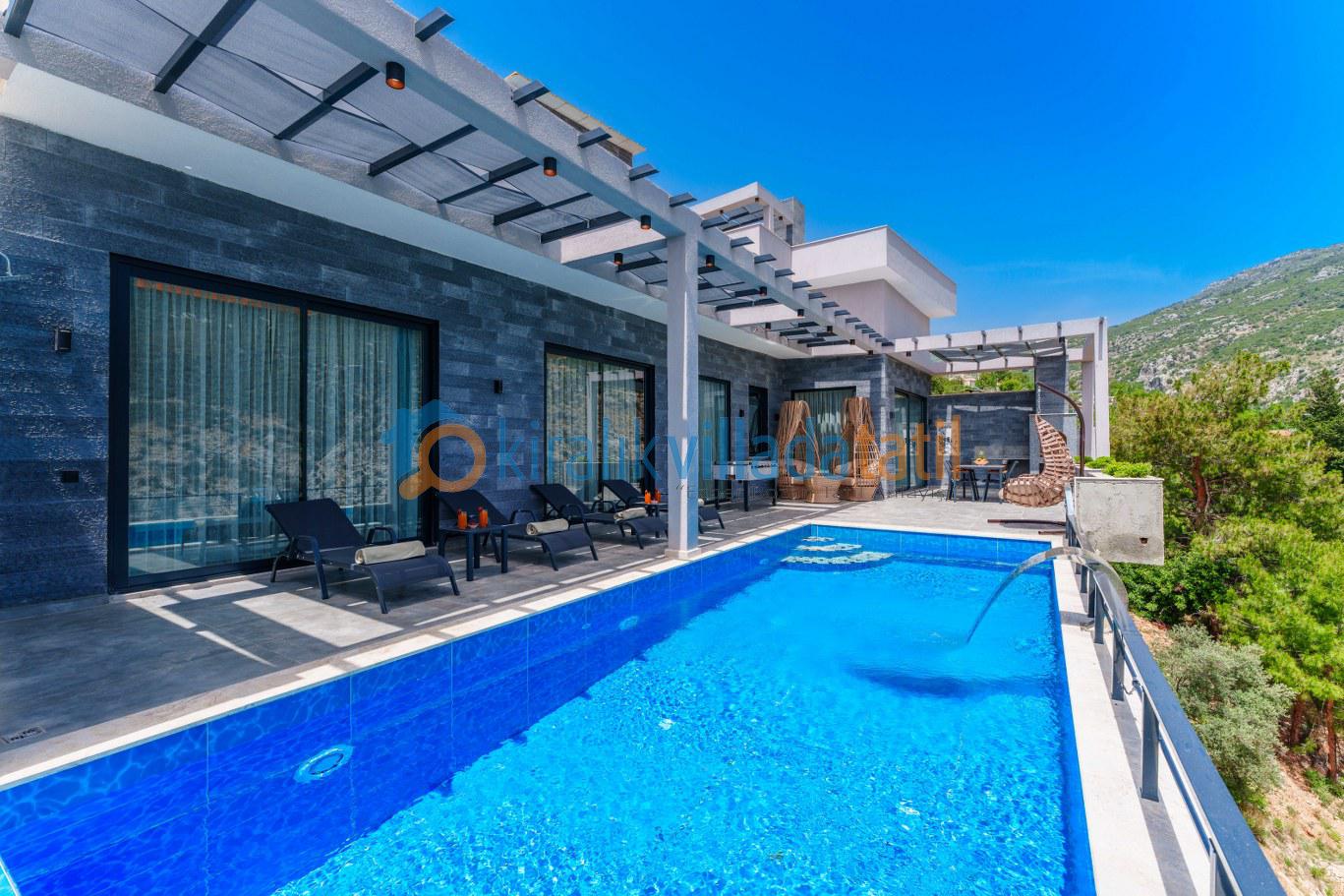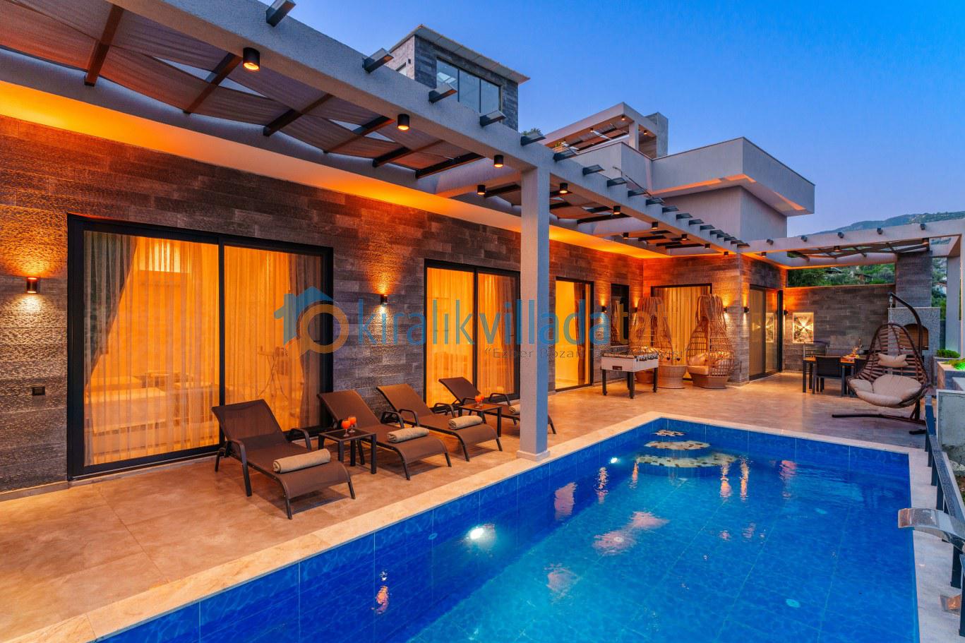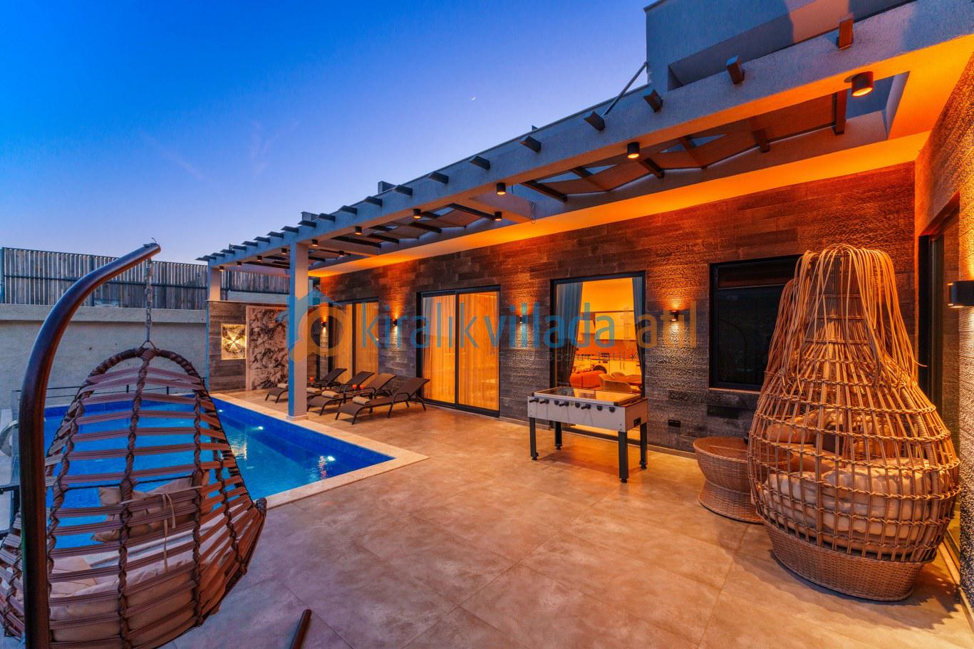 Güneşlenme terası, şezlonglar ve geniş havuz alanı gün boyu keyifli zaman geçirmenizi sağlar. Denize yakın konum avantajı sayesinde bölgedeki deniz manzaralı villa seçenekleriyle aynı kategoride tercih edilen konaklama tiplerindendir.