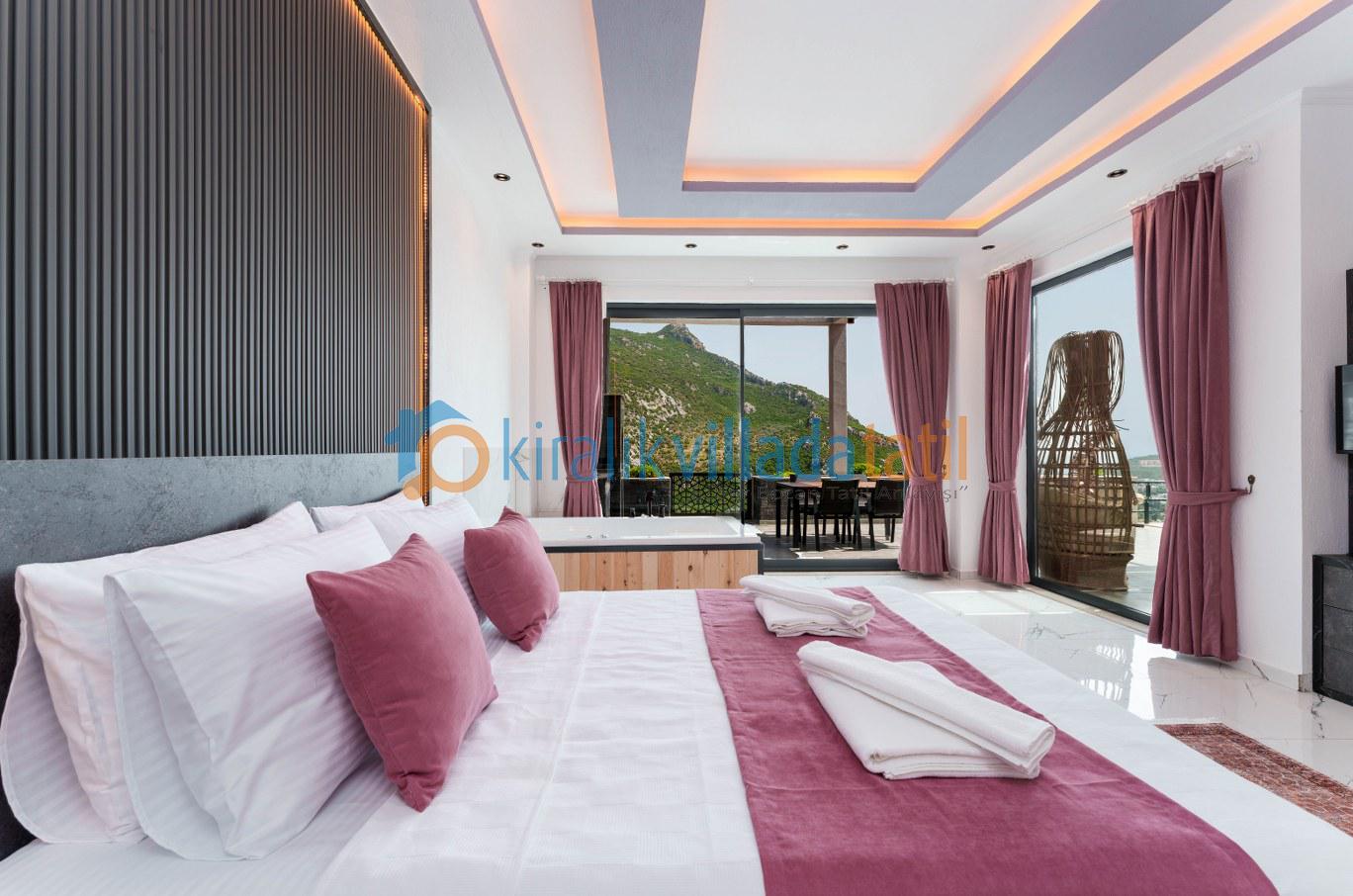 Çift kişilik yatak, jakuzi, TV, elbise dolabı, makyaj masası ve özel banyo & WC bulunmaktadır. Havuz terasına direkt çıkış sunar.