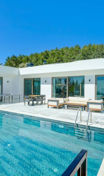 Havuz, havuz terası korunaklı olan villamız, muhafazakar aileler, arkadaş grupları, balayı çiftleri için uygun bir villadır. Doğa içerisinde, önü açık doğa manzarasına ve panaromik deniz manzarasına sahip olan villamız, misafirlerine dinlendirici huzurlu ve dış gözlerden uzak bir tatil sunmaktadır.