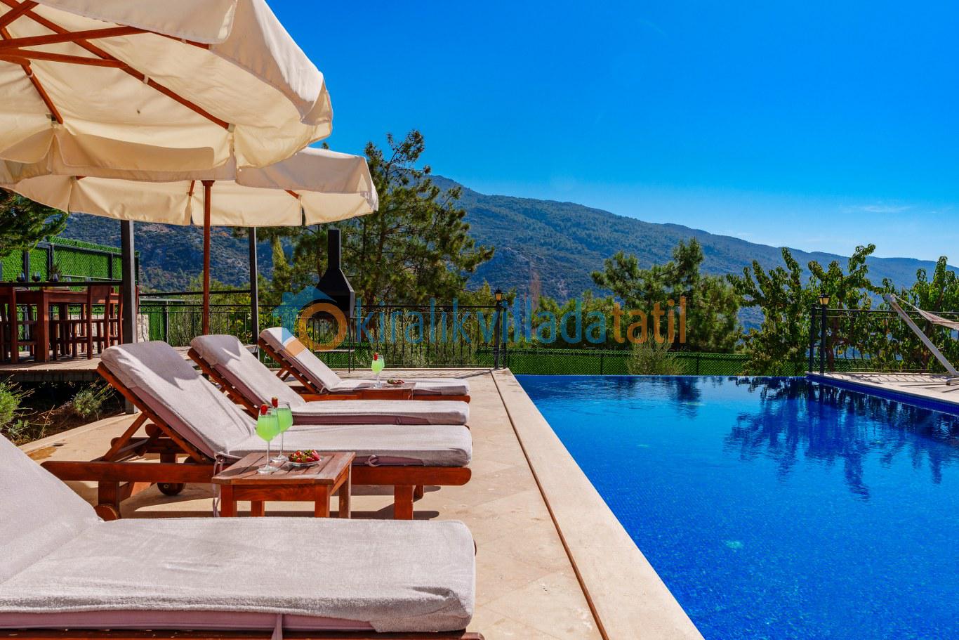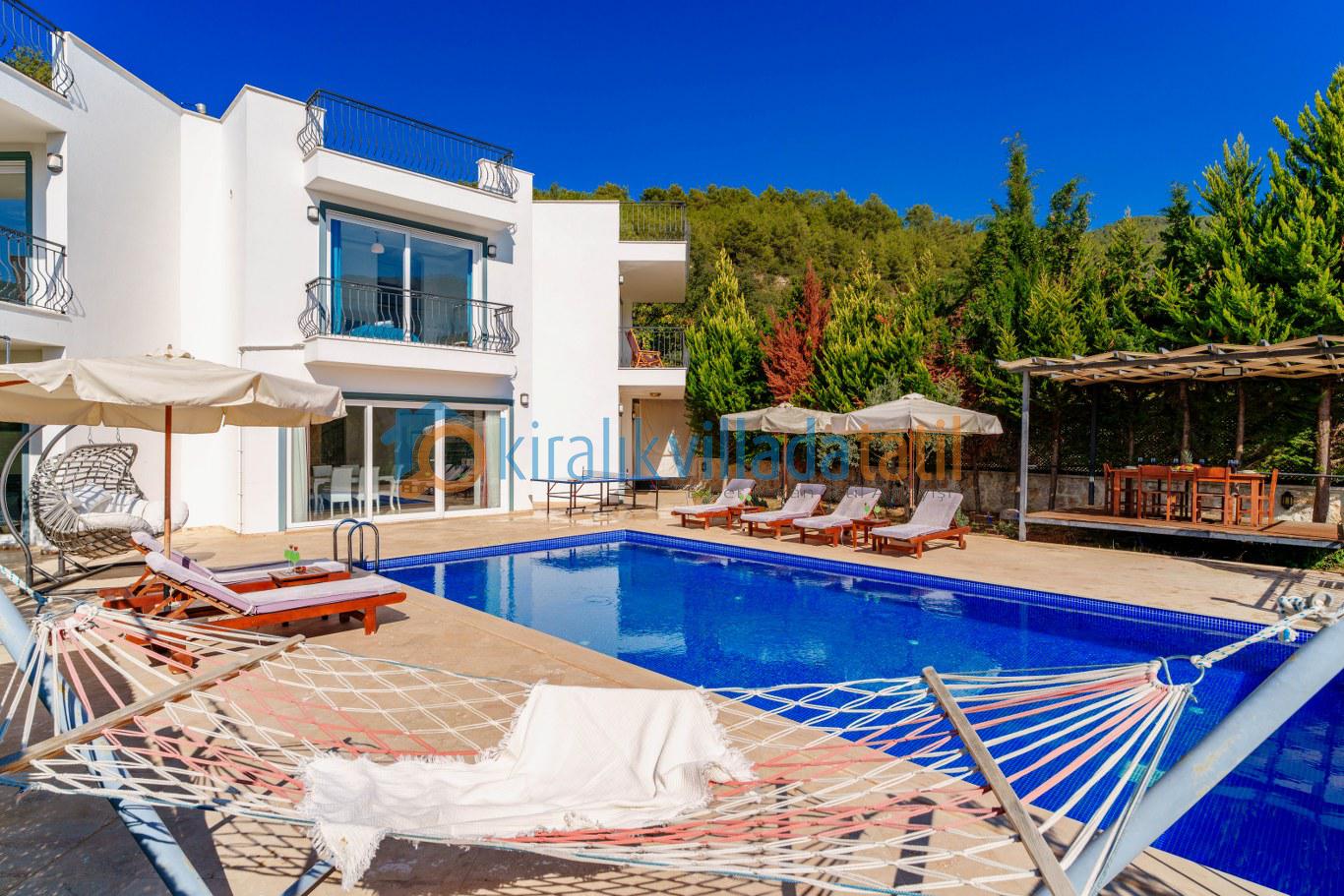 Kalkan İslamlar’da hem huzuru hem konforu bir arada sunan bu kiralık villa, doğanın içinde kaliteli bir tatil arayanlar için mükemmel bir seçenektir.