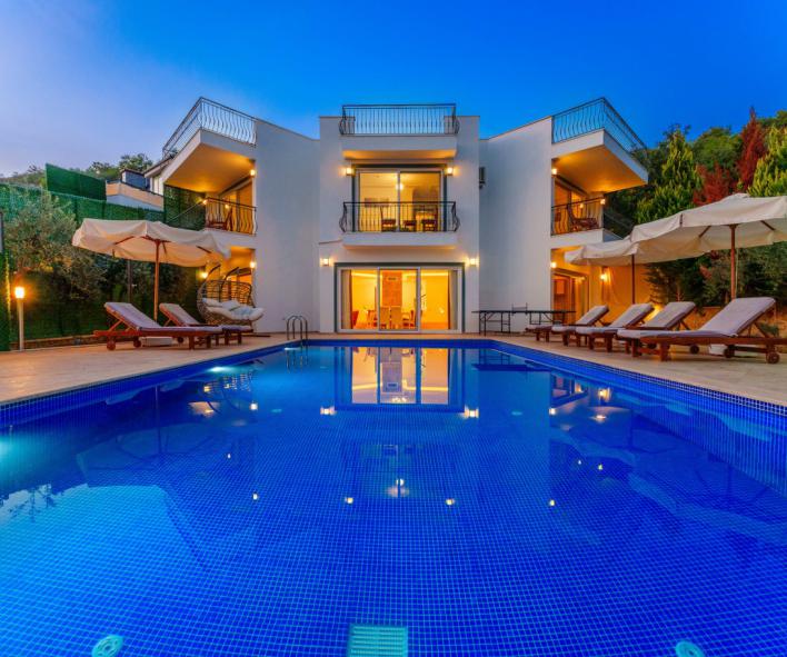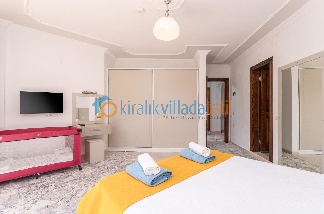 Toplam 3 yatak odası ve 6 kişilik geniş konaklama kapasitesiyle villa, ferah bir yaşam alanı sağlıyor. Modern tasarımı, şık iç dekorasyonu ve tamamen misafire özel kullanım alanları ile lüks villa kategorisinde öne çıkmaktadır. Villanın korunaklı yapısı, havuz ve bahçe alanının dışarıdan görünmesini engellediği için korunaklı villa ve muhafazakâr villa arayan aileler tarafından sıkça tercih edilir. Mahremiyet, güvenlik ve konfor bu villada en üst seviyede sunulur.