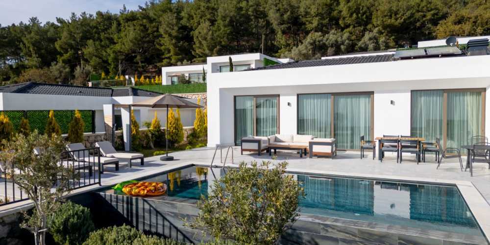 Villanın havuz alanı ve geniş terası korunaklı şekilde planlanmış olup dış gözlerden uzak bir kullanım sağlamaktadır. bu özelliği sayesinde özellikle mahremiyetine önem veren misafirler için rahat ve güvenli bir tatil ortamı oluşturur. Geniş bahçe alanı mangal köşesi ve açık hava oturma alanları sayesinde gün içerisinde doğanın keyfini çıkarabilir, akşam saatlerinde sevdiklerinizle birlikte keyifli sofralar kurabilirsiniz.