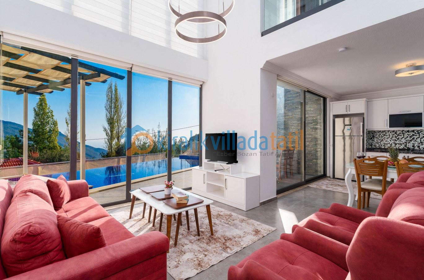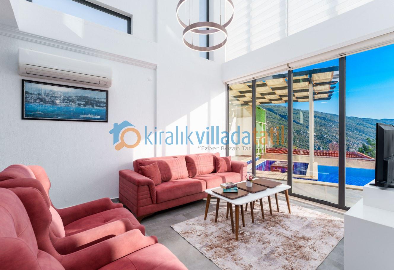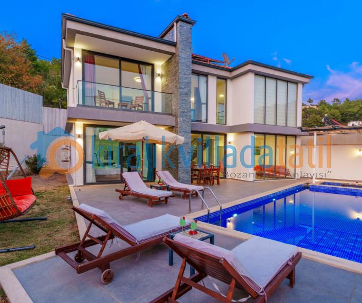 Kiralık Villada Tatil’in güvenilir ve geniş portföyü içinde yer alan bu özel villa, Kalkan’ın huzuruyla ünlü İslamlar bölgesinde, doğayla tamamen bütünleşmiş bir konumda misafirlerini ağırlıyor. Modern mimarisi, şık tasarımı ve geniş yaşam alanlarıyla hem çiftlere hem de küçük ailelere konforlu ve mahremiyeti yüksek bir tatil imkânı sunuyor.