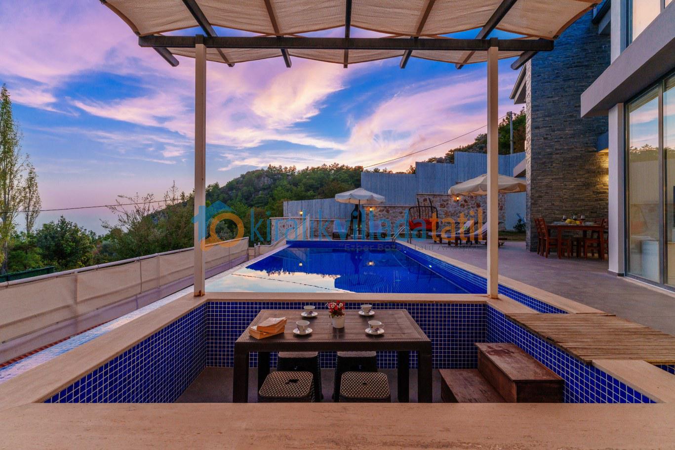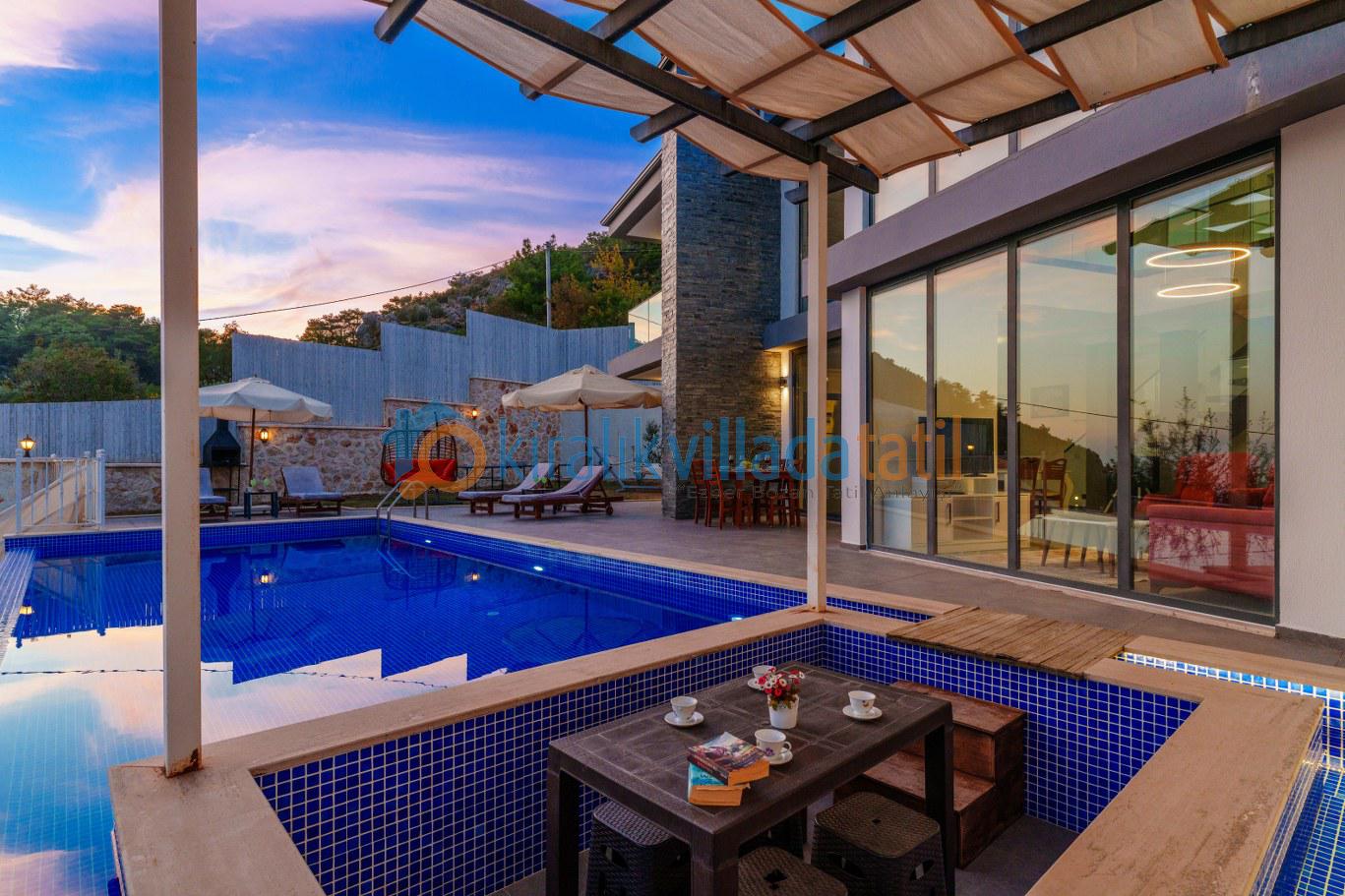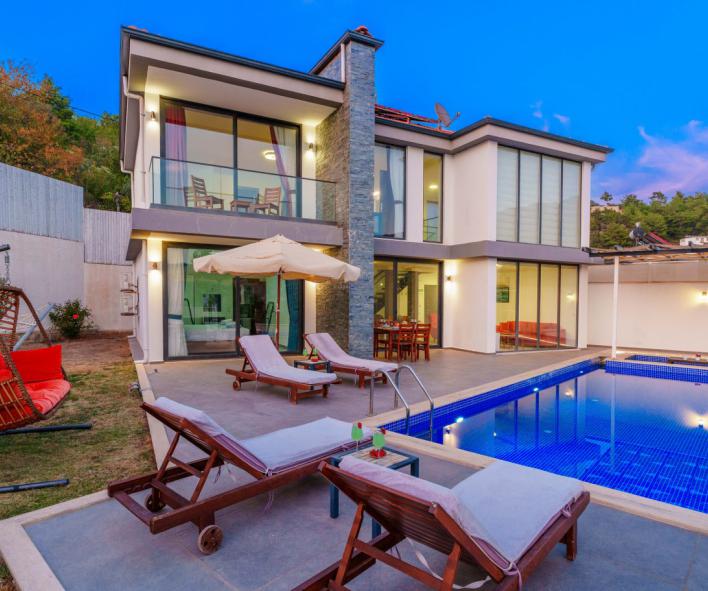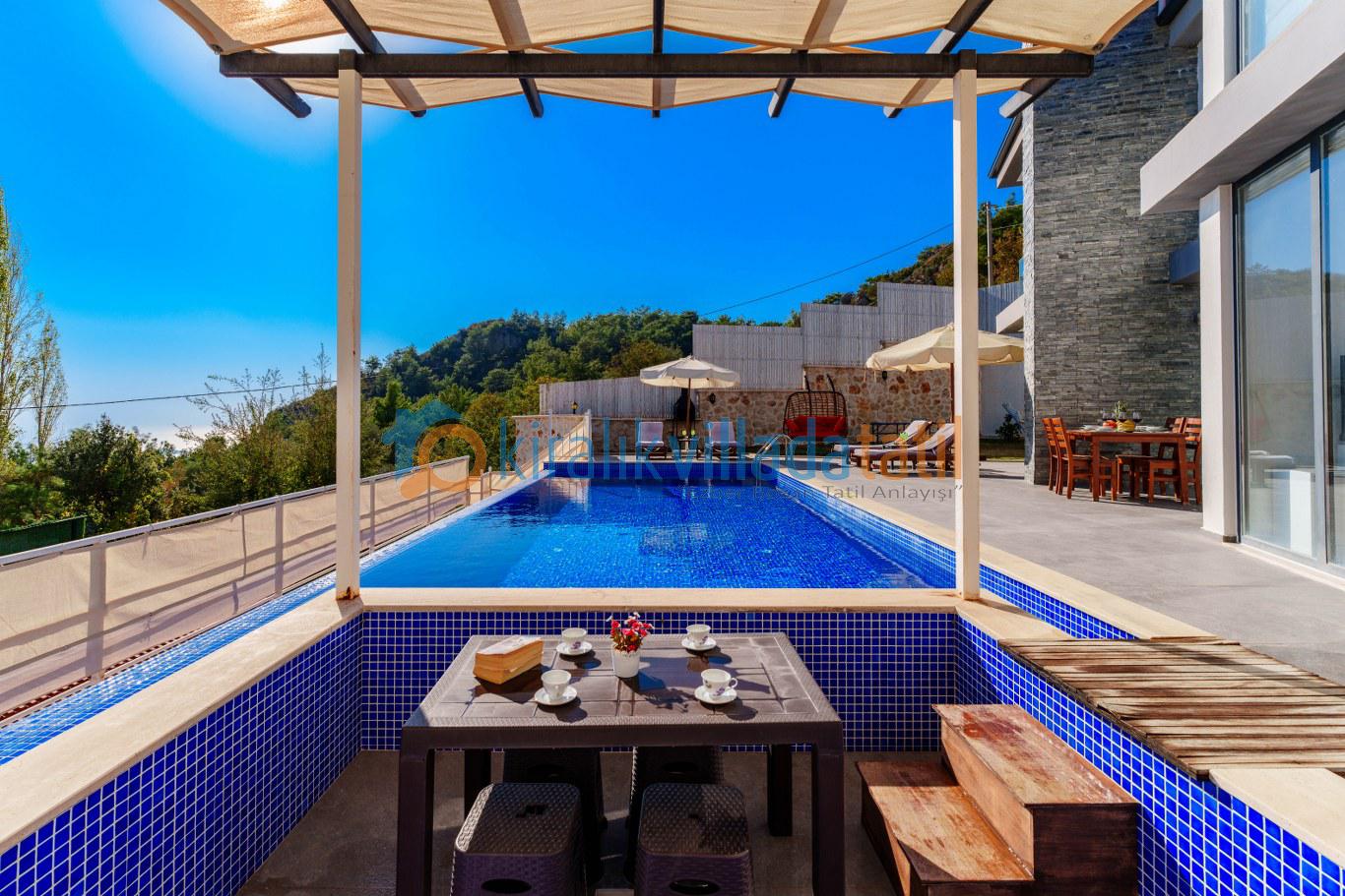 Kiralık Villada Tatil’in güvenilir ve geniş portföyü içinde yer alan bu özel villa, Kalkan’ın huzuruyla ünlü İslamlar bölgesinde, doğayla tamamen bütünleşmiş bir konumda misafirlerini ağırlıyor. Modern mimarisi, şık tasarımı ve geniş yaşam alanlarıyla hem çiftlere hem de küçük ailelere konforlu ve mahremiyeti yüksek bir tatil imkânı sunuyor.