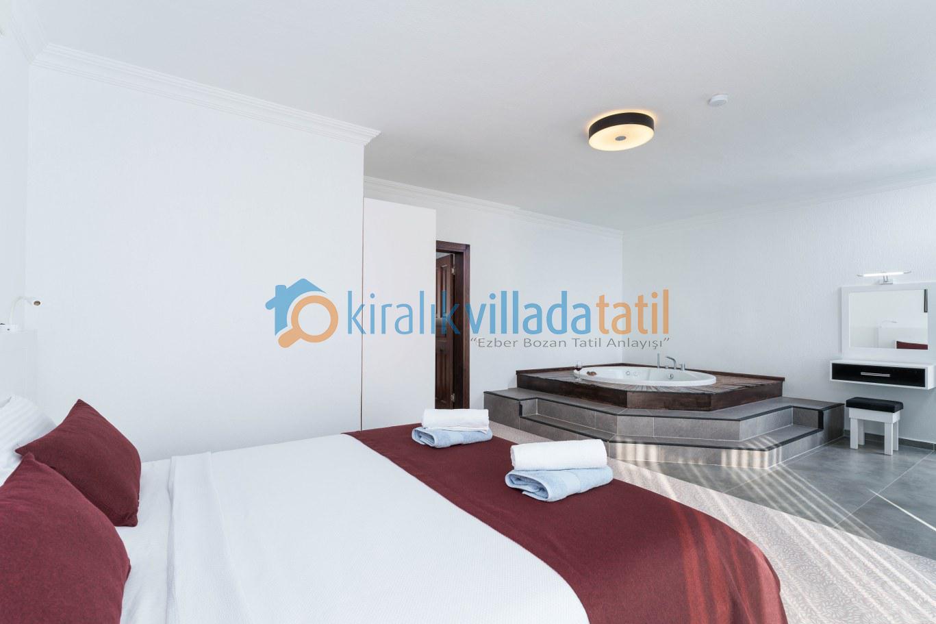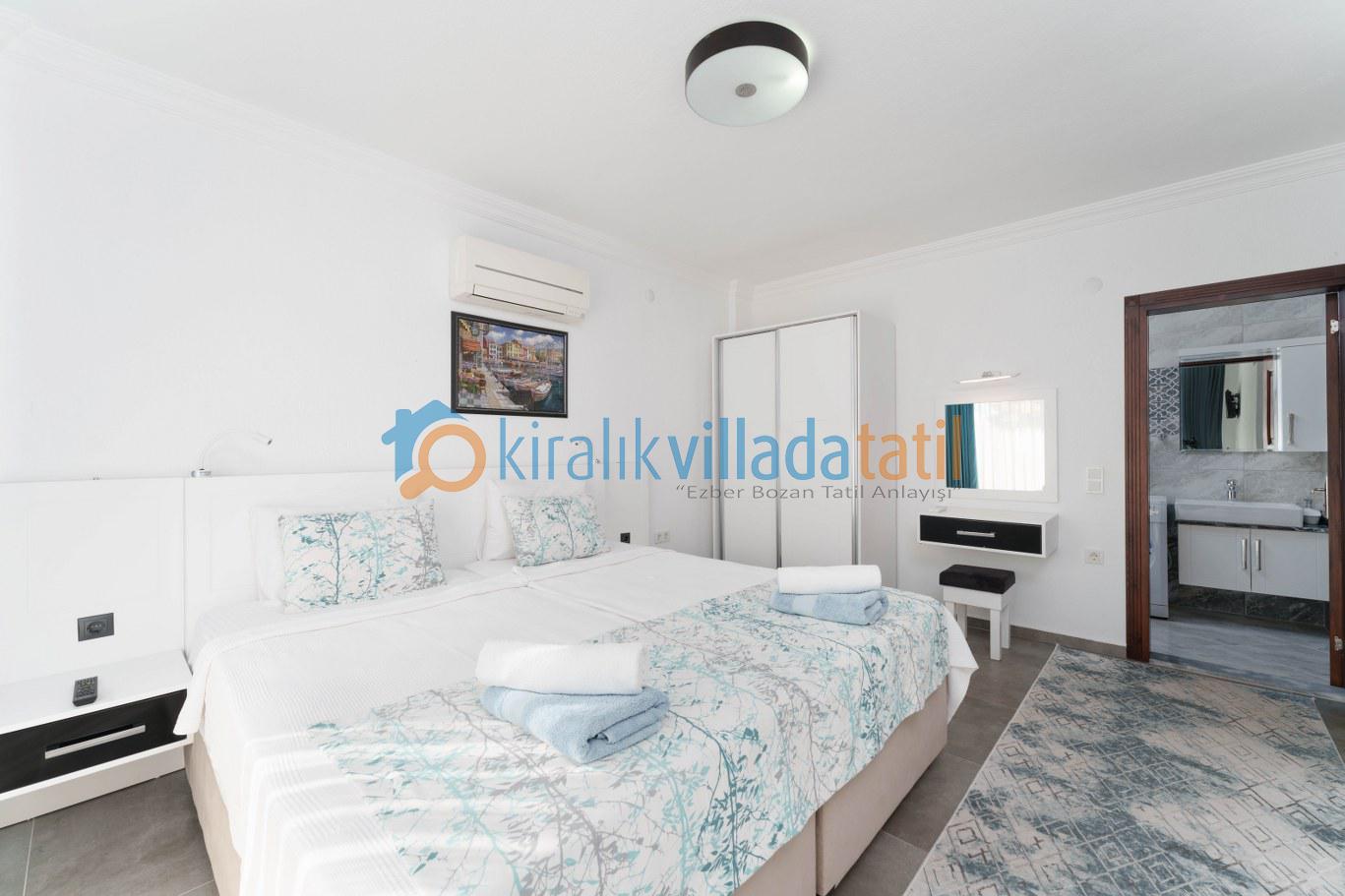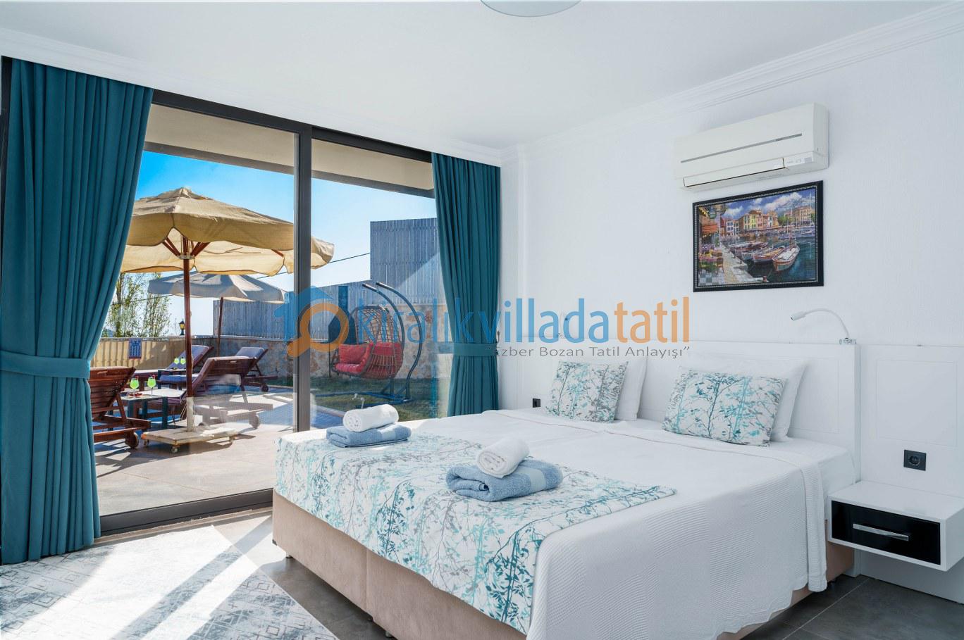 Toplam 2 yatak odası bulunan villamız, 4 kişilik kapasitesiyle kompakt fakat oldukça donanımlı bir yaşam alanı sağlar. Dışarıdan görünmeyecek şekilde tasarlanmış havuz alanı sayesinde korunaklı villa arayan misafirler için ideal bir tatil ortamı oluşturur. Bu yapı, özellikle muhafazakâr villa konseptinde tatil planlayan aileler tarafından sıklıkla tercih edilmektedir.