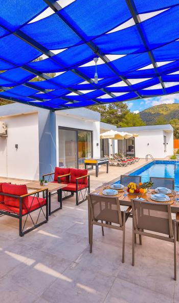 Panoramik doğa manzarasına sahip olan villamızda, dinlendirici bir tatil yaşarken aynı zamanda, havuz terasındaki langırt ve mangal alanı, yatak odasındaki jakuzi ile eğlenceli zamanlar da geçirebilirsiniz.