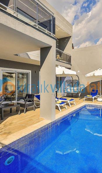 Kalkan’ın yeşilin her tonunu sunan İslamlar Köyü Öz mevkiinde yer alan bu modern ve lüks tatil villası, 2 süit (banyolu) yatak odası ve geniş salonuyla toplam 4 kişilik kapasite sunar. Oturma odasındaki açılır kanepeler sayesinde kapasite 6 kişiye kadar artırılabilir. Bu özelliğiyle hem küçük ailelere hem de geniş ailelere uygun nadir seçeneklerden biridir.