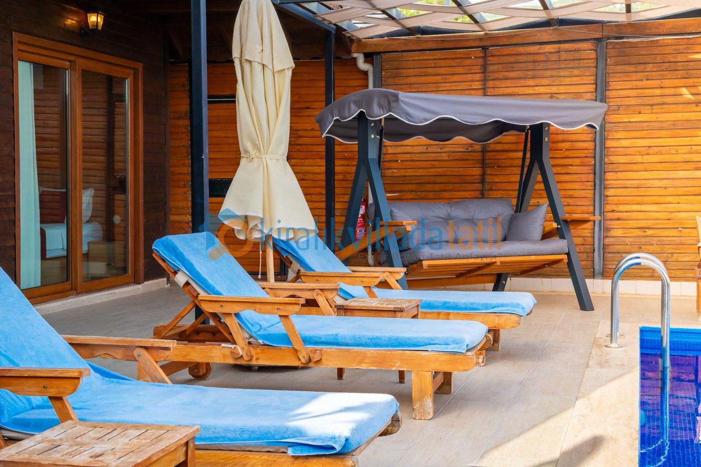 Bu ilan ait Detaylı açıklama ve bilinmesi gereken detaylarKalkan İslamlar'da bulunan villamız, bungalow tarzı yapısıyla öne çıkmaktadır. 2 yatak odası ile 4 kişilik kapasiteye sahip olan villamız, aynı zamanda, korunaklı havuz havuz terası ile, muhafazakar aileler ve balayı çiftleri için de uygun bir villadır.