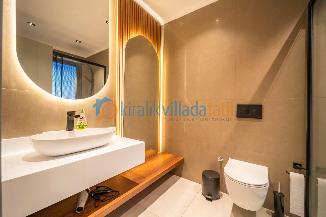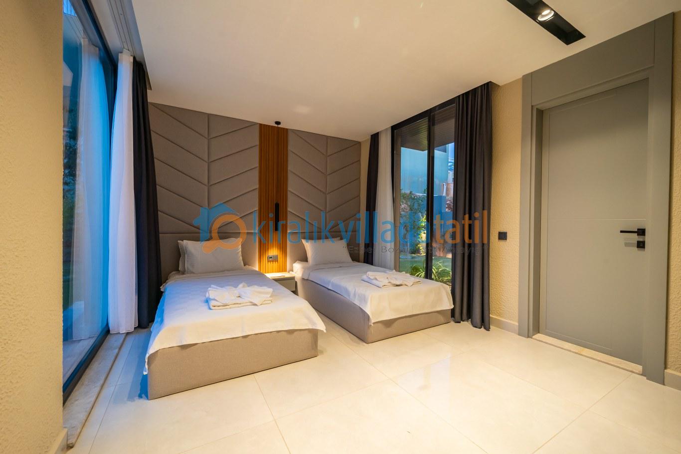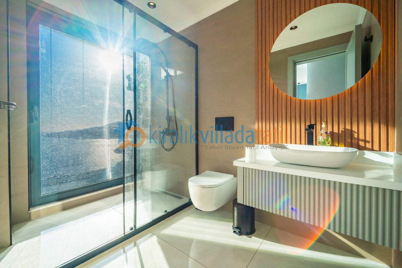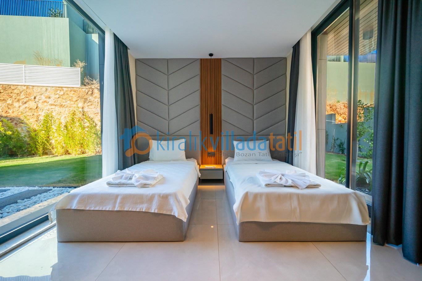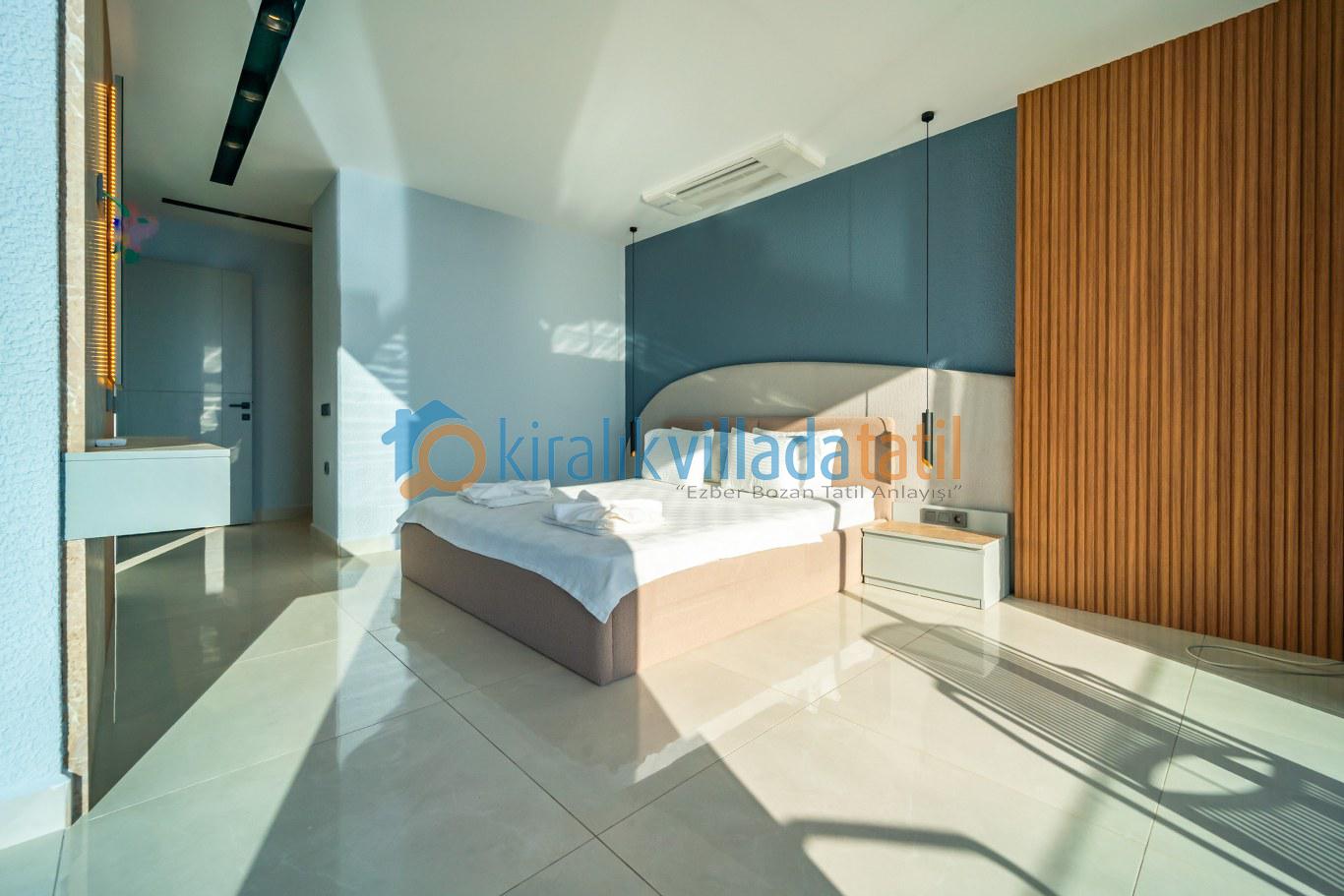 Villanın 5 yatak odasının büyük bölümü deniz manzaralıdır ve her biri özel banyo ile donatılmıştır. Bu yapısıyla hem mahremiyet hem de geniş kullanım alanı sağlayarak büyük aileler ve arkadaş grupları için ideal bir konaklama sunar.
