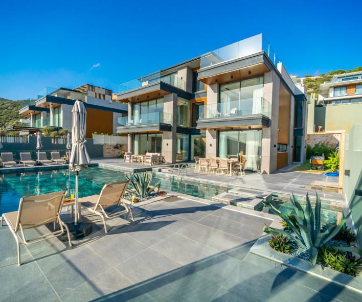 Kalamar Koyu'nun sakin, elit ve doğayla iç içe atmosferi, merkezi lokasyona olan yakınlığıyla birleştiğinde misafirler hem huzuru hem de erişilebilirliği aynı anda yaşayabilir. Plaj kulüplerine, restoranlara ve deniz aktivitelerine kısa mesafede yer alan bu villa, tatili bir üst seviyede deneyimlemek isteyen misafirler için güçlü bir seçenektir.